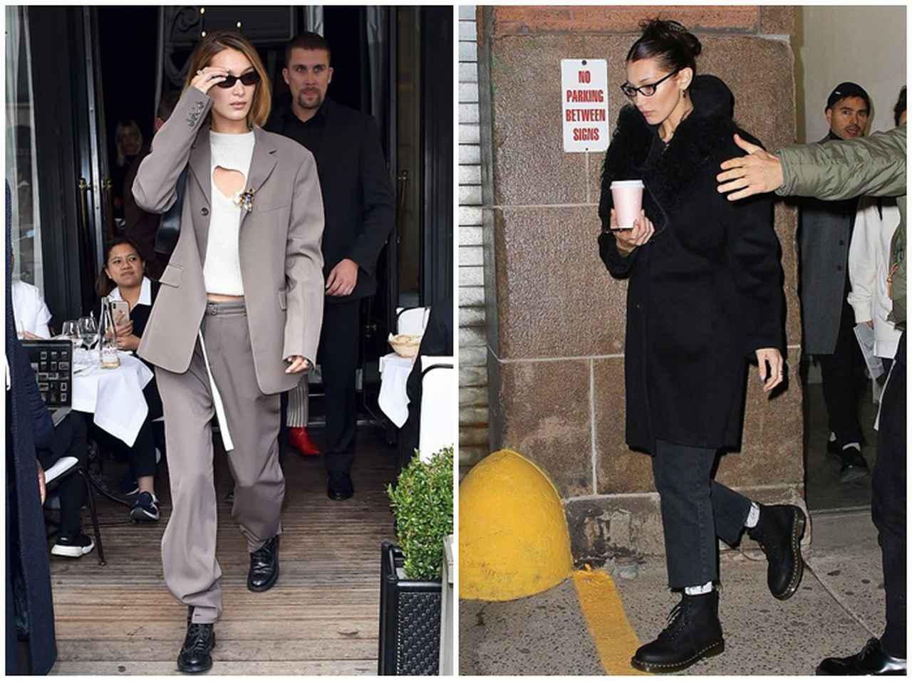 人気モデルのベラ・ハディッドは、今季トレンドのスーツにマーチンのブーツを合わせたり、シンプルなオールブラックのコーデにマーチンのブーツを合わせ、足元にクールなアクセントを置くのがお好み。