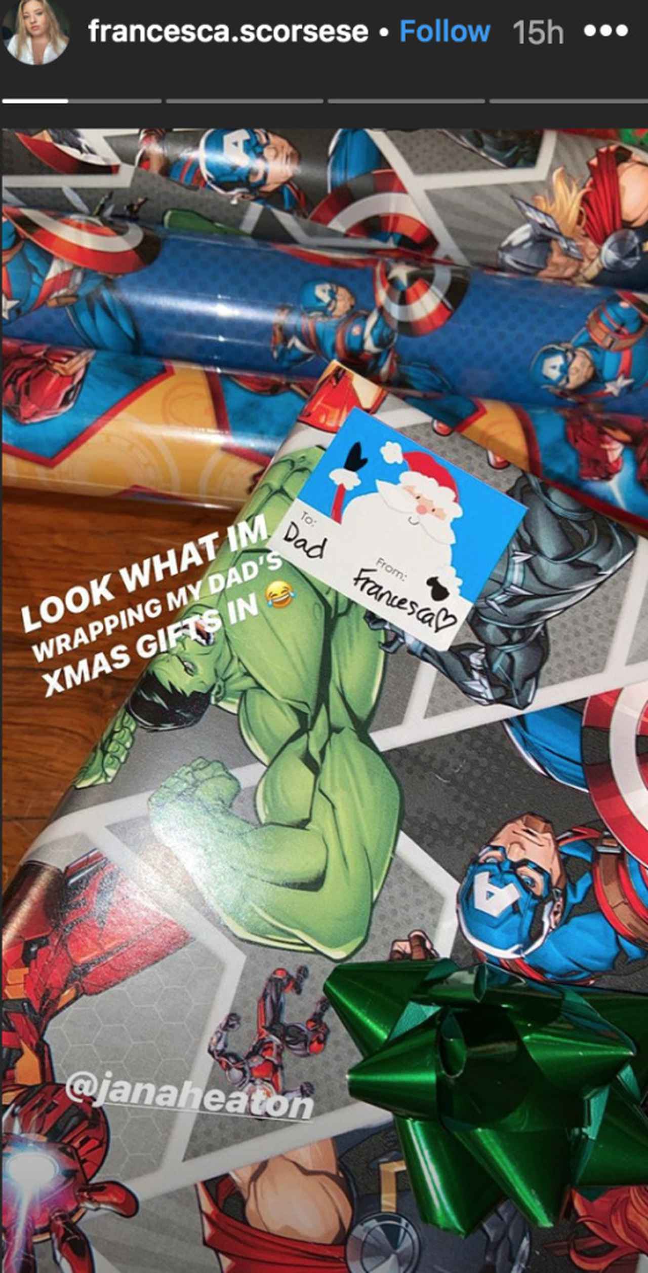 2019年10月ごろ、“マーベル映画はシネマとは言えない”と発言し映画業界を騒然とさせた映画監督のマーティン・スコセッシ。その娘のフランチェスカ・スコセッシがスコセッシ監督に送ったクリスマスプレゼントの包装紙が、皮肉たっぷりの“あの柄”だった。(フロントロウ編集部)