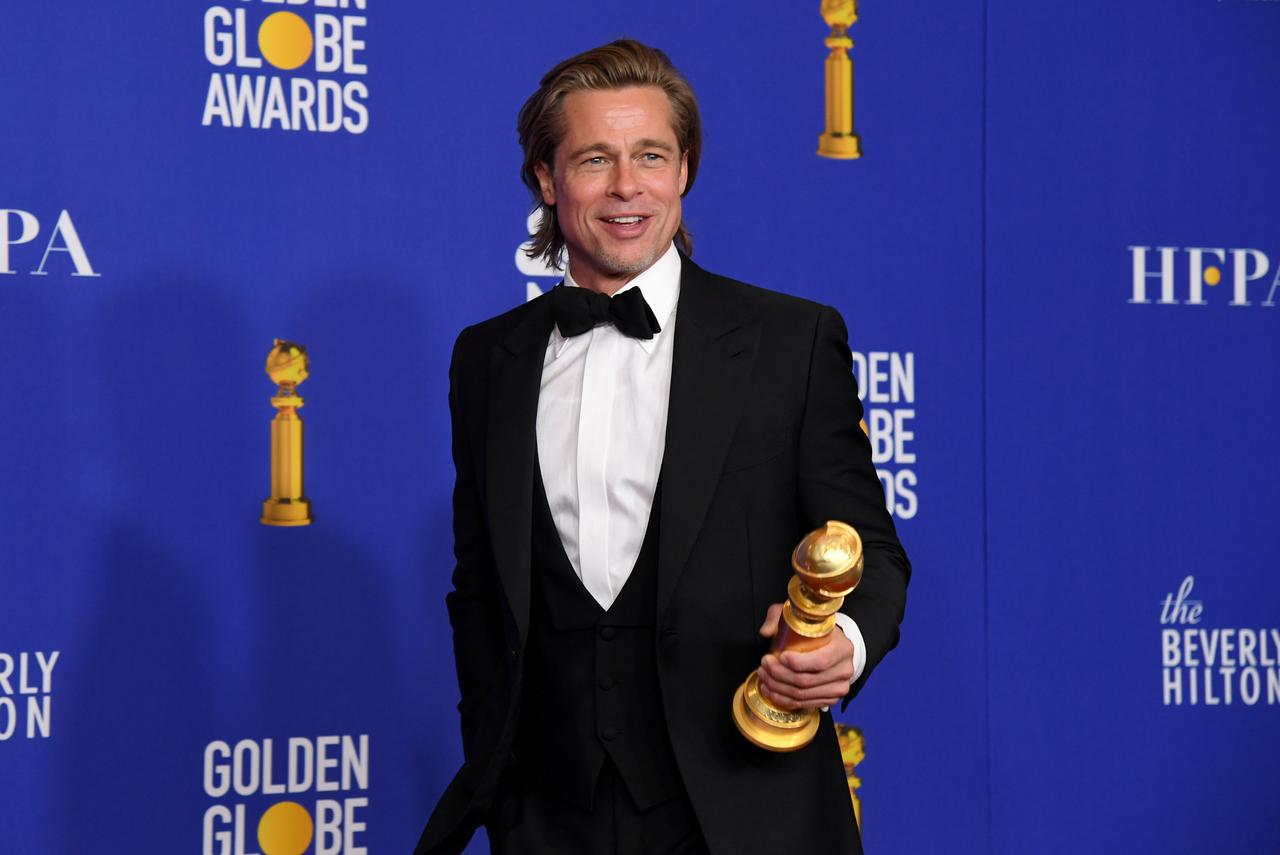 現地時間2020年1月5日に米カリフォルニア州のザ・ビバリー・ヒルトンで開催されている第77回ゴールデン・グローブ賞授賞式で、『ワンス・アポン・ア・タイム・イン・ハリウッド』での演技で助演男優賞を受賞したブラッド・ピット。