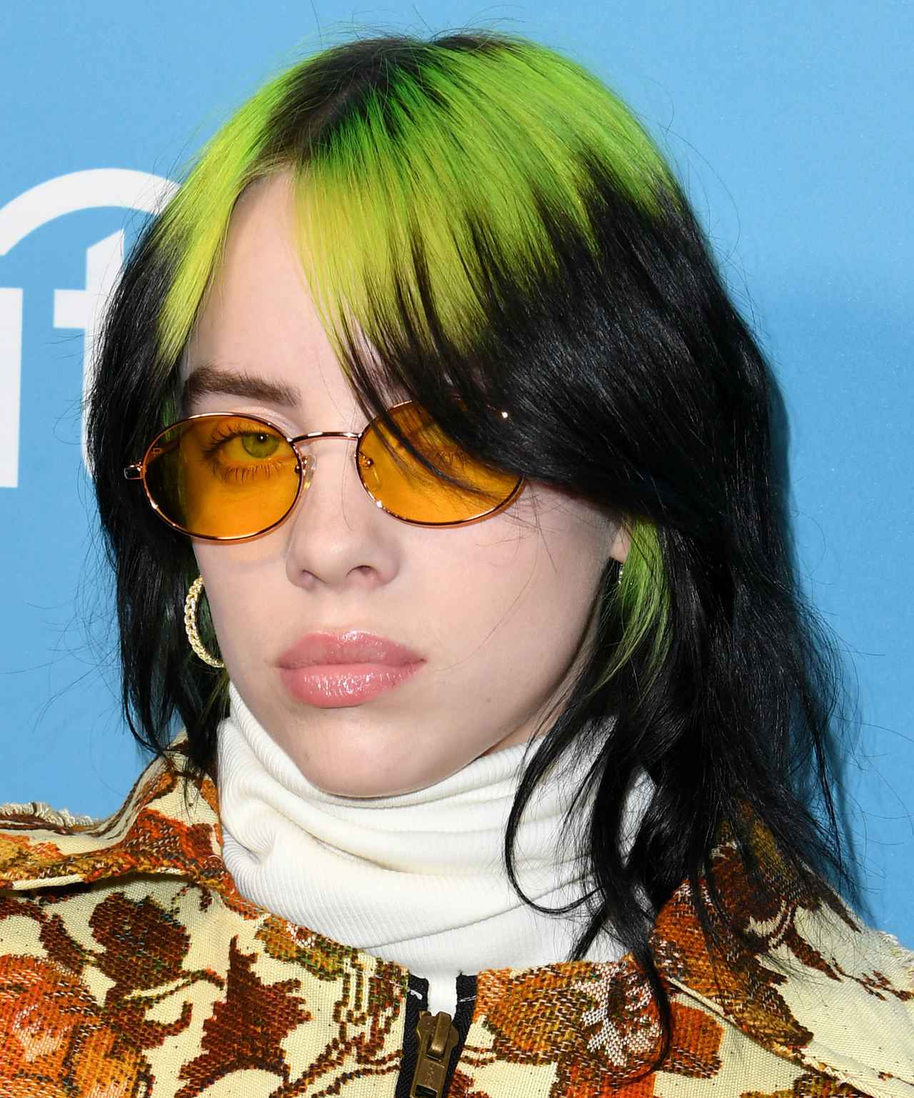 長めバングスの重めなマレットヘアを取り入れたシンガーのビリー・アイリッシュは、重く見えるトップの部分にネオングリーンのヘアカラーでアクセントをつけてポップに。