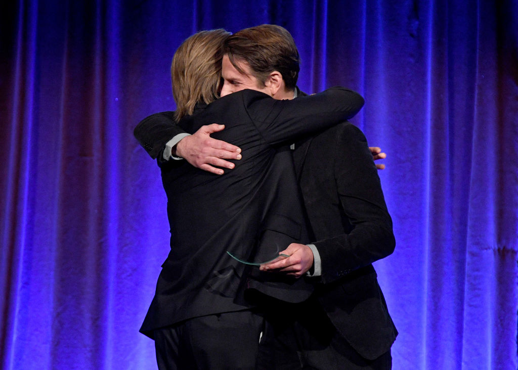 1月8日の授賞式でプレゼンターを務めた俳優のブラッドリー・クーパーによって壇上に呼ばれたブラッドは、ブラッドリーの頬にキスをして笑顔でハグ。