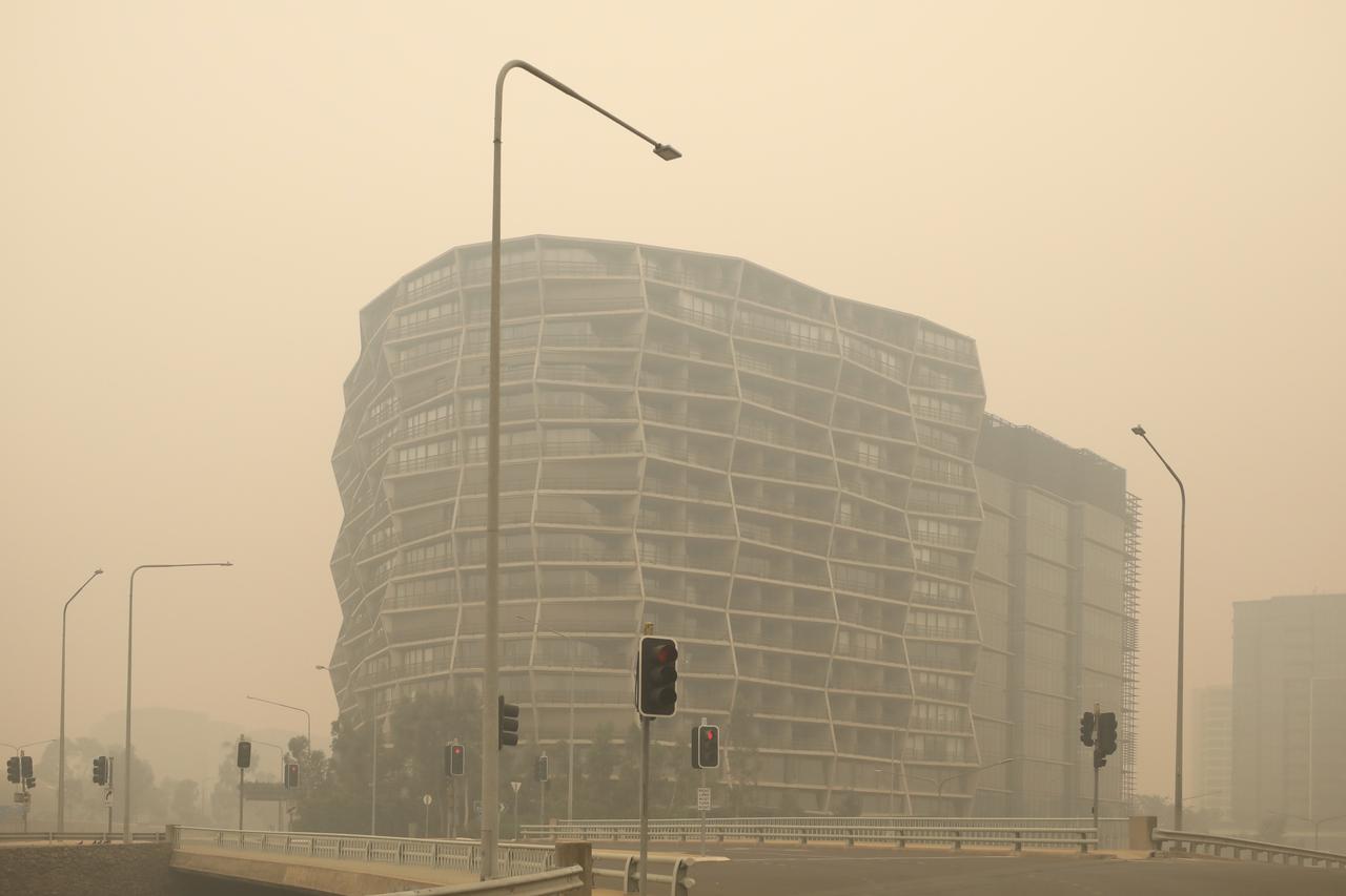 山火事の煙がダウンタウンにも充満(キャンベラにて2020年1月5日撮影)