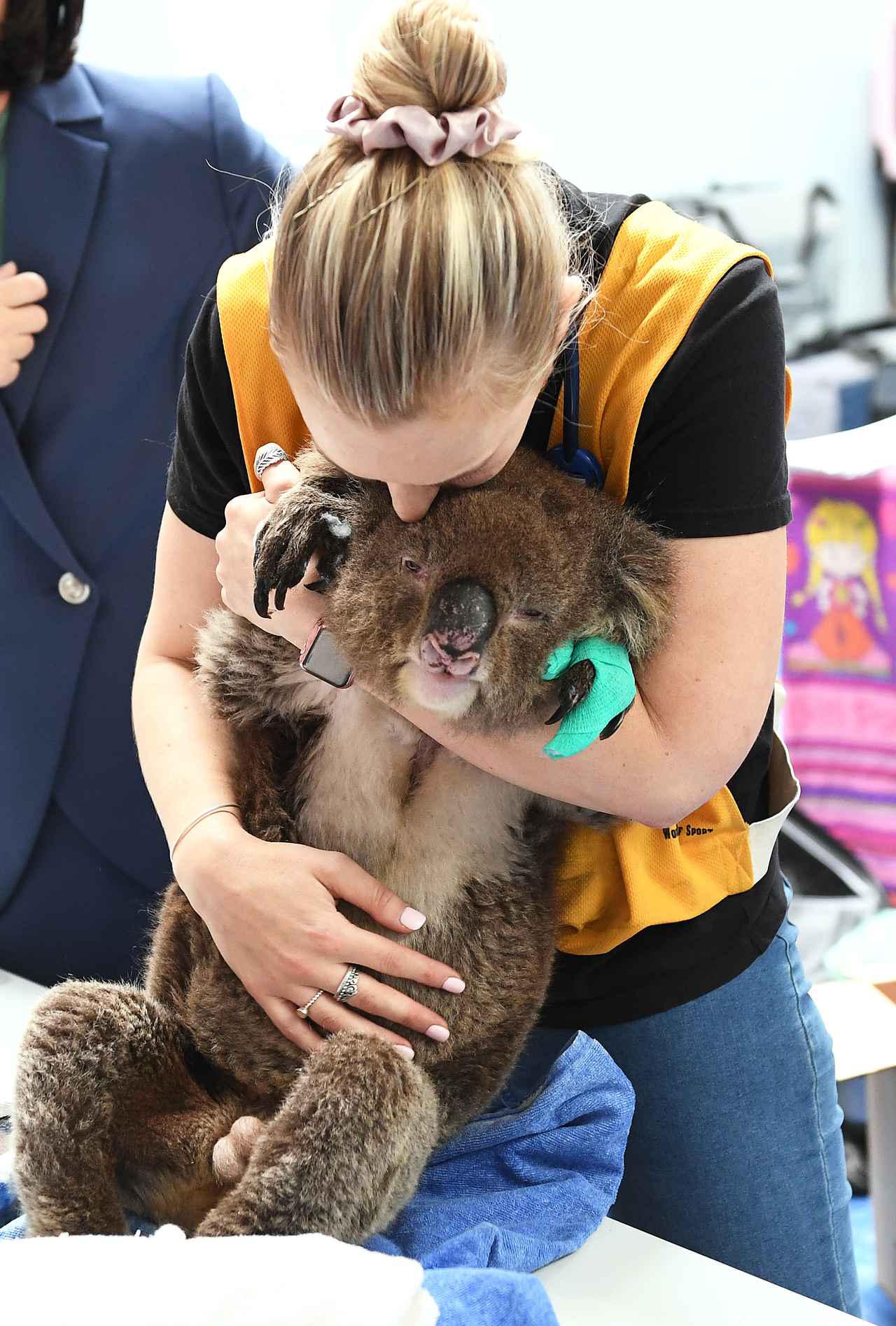 レスキューされたコアラを抱く看護師の女性(アデレード・コアラ・レスキューにて2020年1月8日に撮影)
