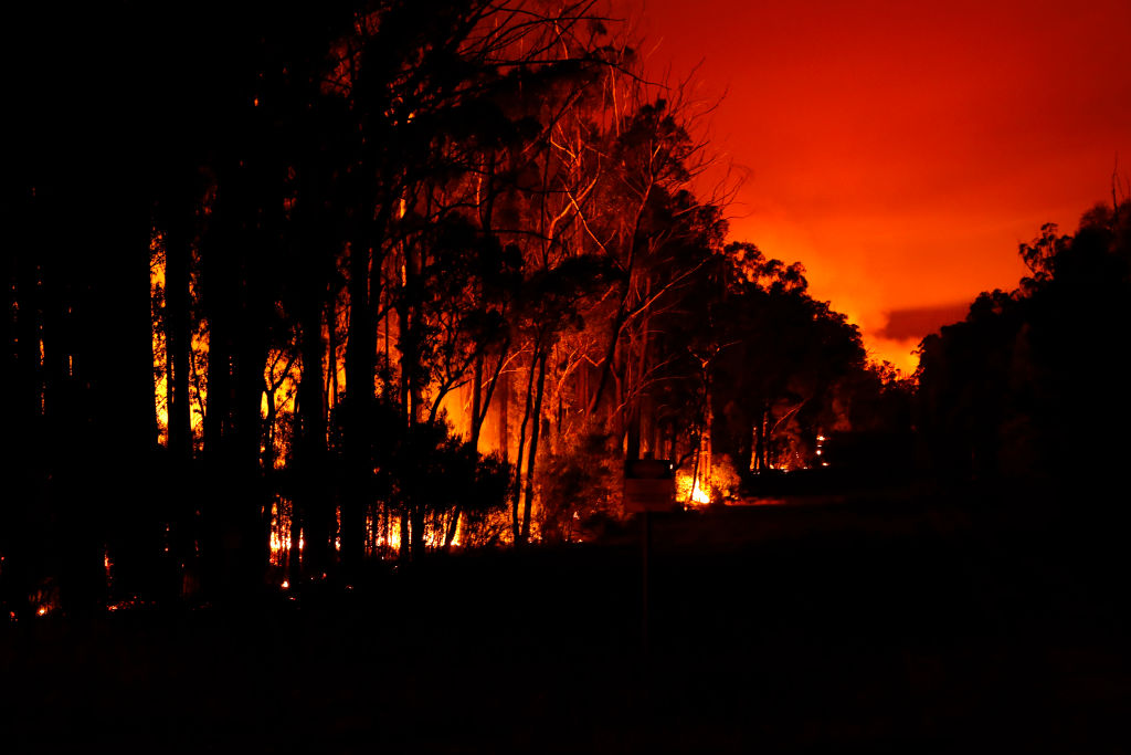 森林が燃え、空が赤く染まる(イースト・ギップスランドにて2020年1月2日に撮影)