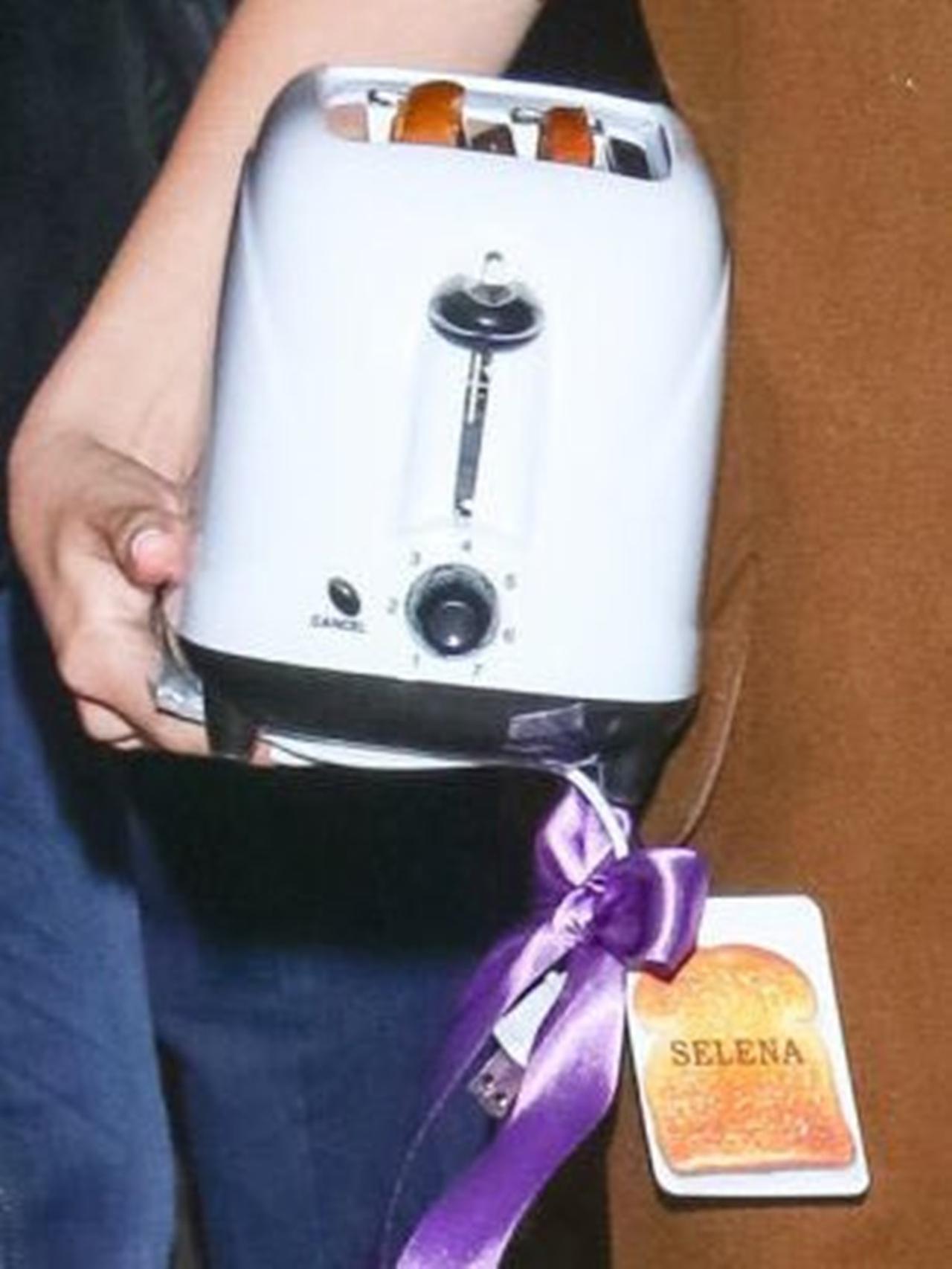この日、ロサンゼルス市内にあるセレブ御用達の人気レストラン「Craig’s(クレッグス)」で、親しい友人を招いて『レア』発売のお祝いを兼ねた食事会を開いたセレーナ。食事を終えて、レストランから出てきたセレーナの手元には、なぜかパンが入った状態のトースターが…。