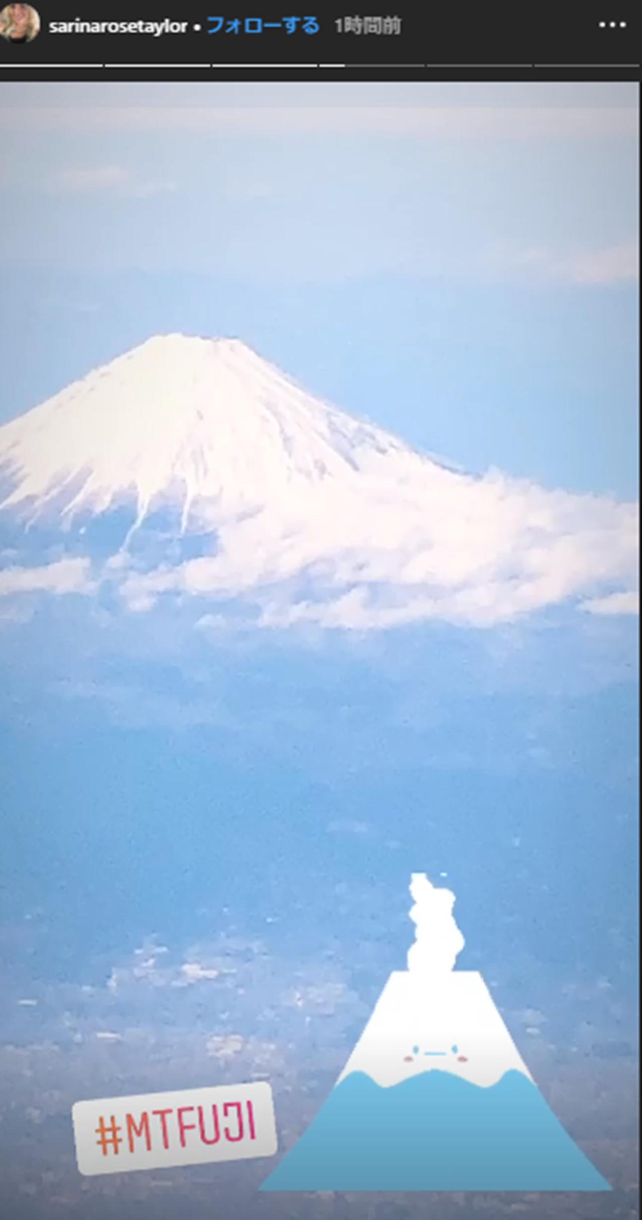 サリナはロジャーがソウルの空港で1人1人にサインをしているところなど、裏側を自身のインスタグラムのストーリーで公開しており、ソウルから東京に移動中も写真撮影。サリナが撮影したのは、日本の象徴とも言える富士山。プライベートジェットの中からかなり綺麗に撮影出来たようで、その様子を世界中にいる4万人以上のフォロワーにシェアした。