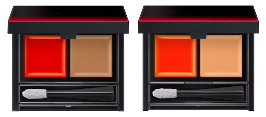クリームルージュ「レッドヌードルージュ」は、赤系1色、ヌード系1色の2色がセットになり、鮮やかな赤を下地として使い、ヌードカラーを上から重ねることで、自分にしっくりくる色が見つけられるという新発想のリップ。