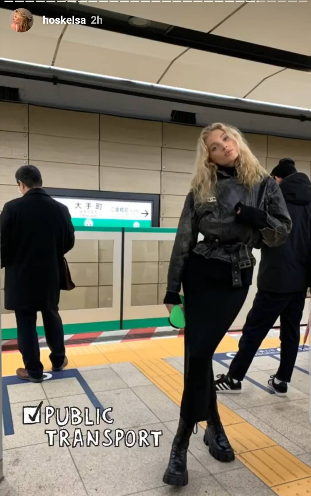 先日来日していたエルザ・ホスクが、日本で電車に乗って移動していた。(フロンントロウ編集部)