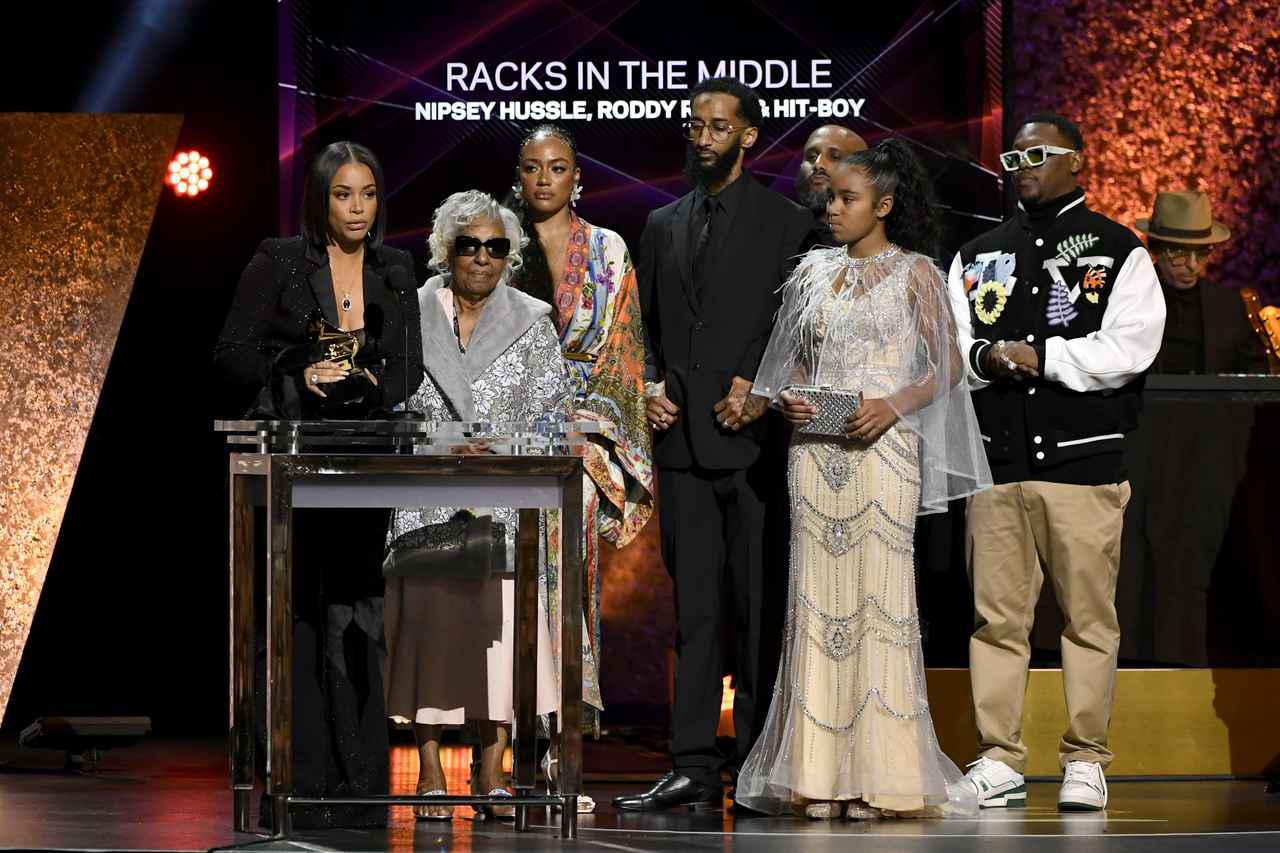 2019年に銃撃事件に巻き込まれて亡くなったラッパーのニプシー・ハッスルが、初のグラミー賞を受賞。残念ながらそれを受け取ることなくこの世を去ったニプシーの代わりに、授賞式では彼のパートナーと祖母がステージに上がりスピーチを行なった。