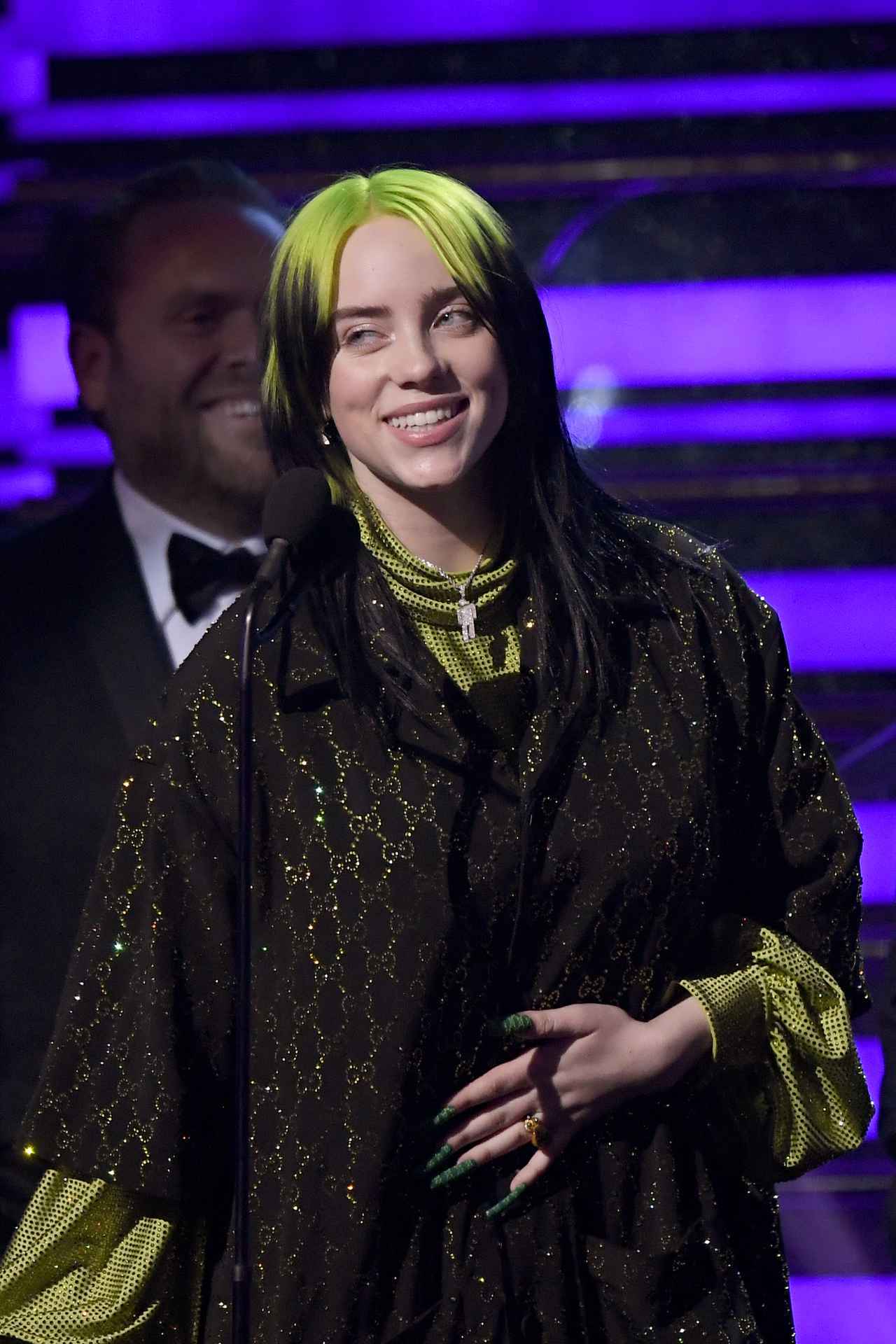 そんな授賞式の最後に発表された年間最優秀レコード賞。舞台裏にいたビリーと兄でビリーをプロデュースするフィニアス・オコネルは、ビリーの受賞がわかるとステージへ。