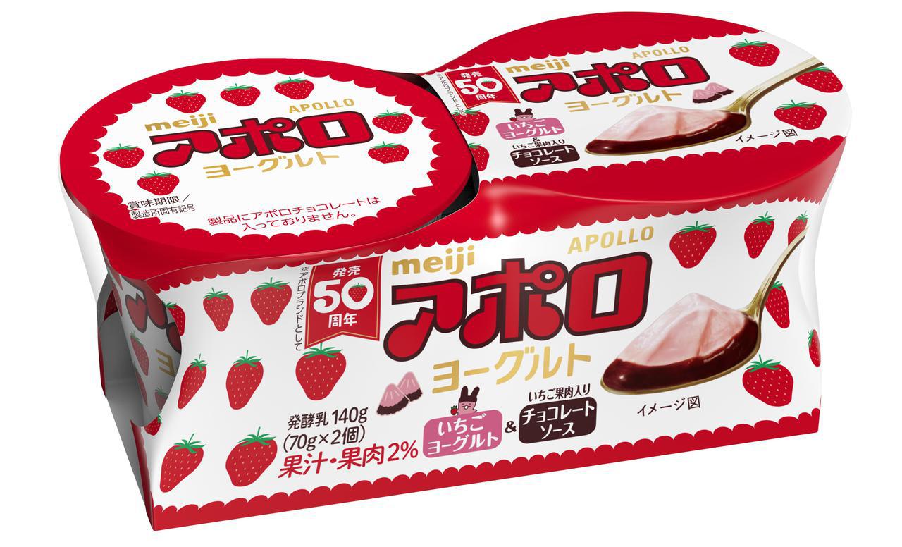 株式会社明治が、ロングセラー小粒チョコレート「アポロ」の生誕50周年を記念して、味わいを忠実に表現した2層タイプのヨーグルト「アポロヨーグルト」を販売開始。(フロントロウ編集部)