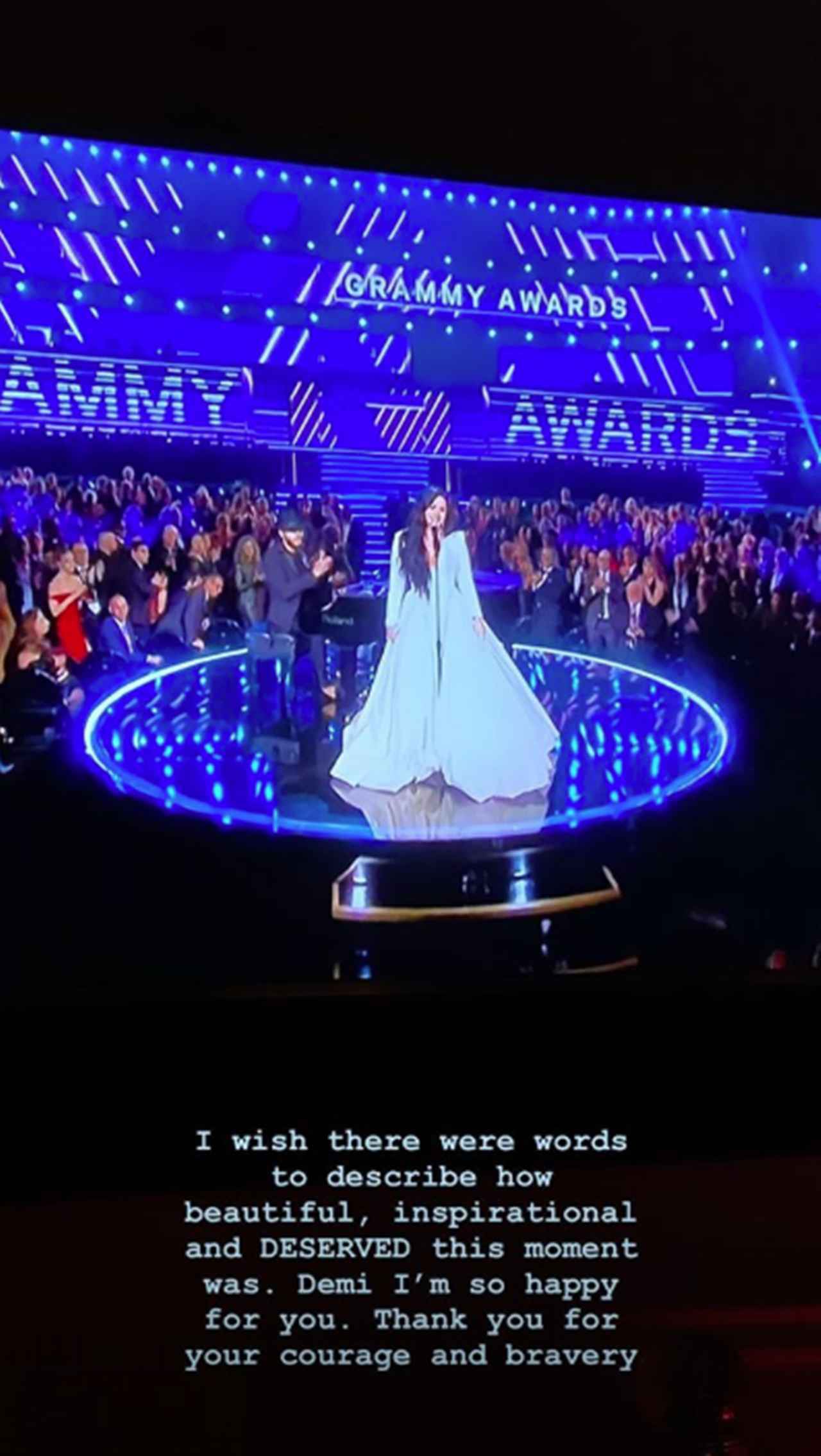 2018年7月に薬物の過剰摂取が原因で一時意識不明の重体となって以来、活動を休止してリハビリに専念していたデミにとって、今回のグラミー賞授賞式でのパフォーマンスは復帰後初めての舞台。セレーナは授賞式には出席していなかったが、お茶の間でその様子を見守っていたようで、インスタグラムのストーリーにデミの写真をアップしてこうコメントした。