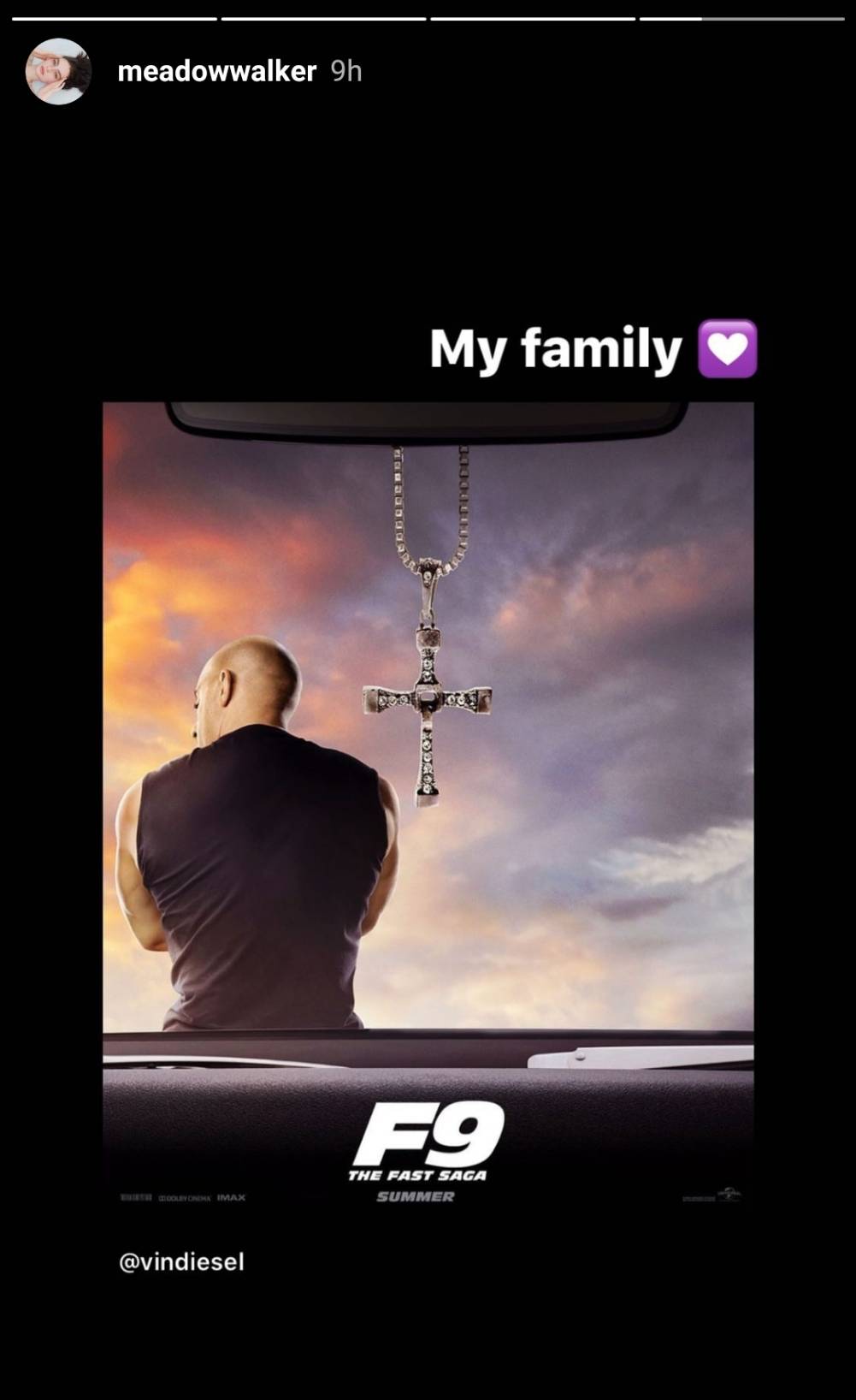 そしてこのポスターには、『ワイスピ』シリーズの1作目からメインキャラクターとして登場していた故ポール・ウォーカーの娘であるミドゥも自身のインスタグラムで反応。父親が出演していた『ワイスピ』の最新作のポスターを見たミドゥは、このポスターに「私の家族」とコメントをつけてアップ。