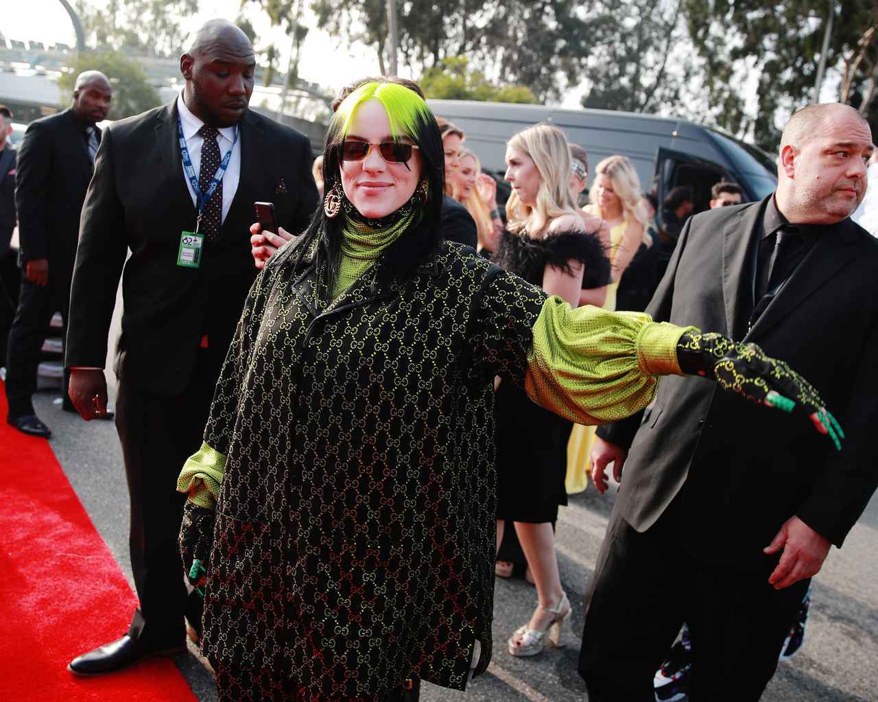 いつものビリーは先がかなり尖ったスーパーロングの単色ネイルをすることが多いけれど、グラミー賞授賞式ではスクエアネイル。衣装として着用したグッチ(Gucci)のロゴを反映したオリジナルGGマークネイル。