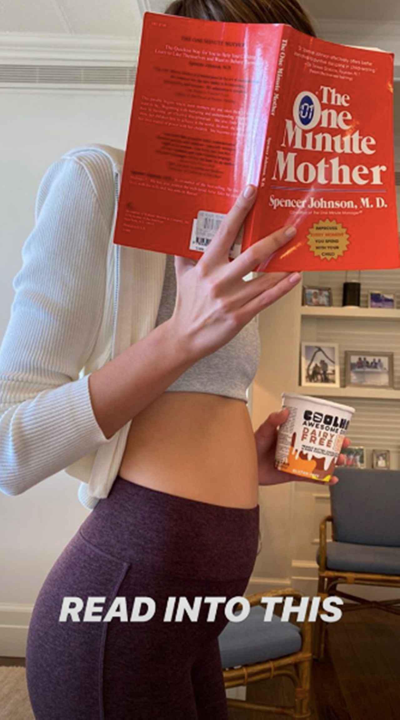しかも、意味深なのは読んでいる本だけでなく、よく見ると下腹部のあたりがまるで妊娠したようにぽっこりと出ている。これはどこからどう見ても妊娠をほのめかす「匂わせ投稿」。