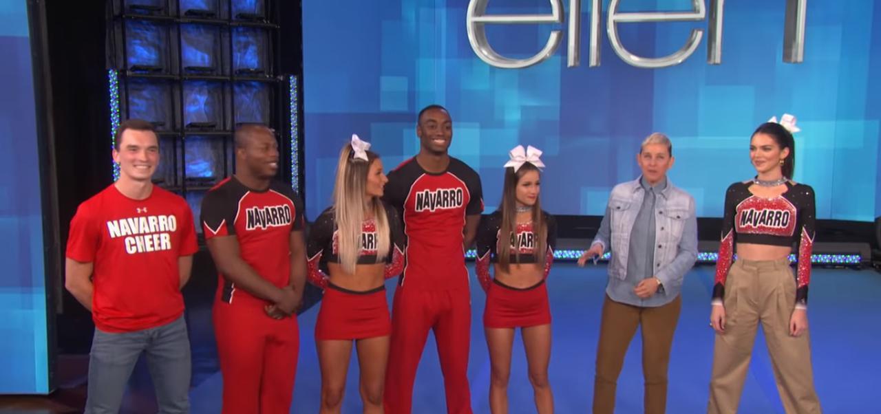 すると、その言葉を聞き逃さなかった司会者のエレン・デジェネレスが、『チアの女王』で密着されたナバロ短期大学の選手モーガン・シミアナーの名前を叫び、舞台裏からモーガンや、他の有名チアリーダーたちが登場。
