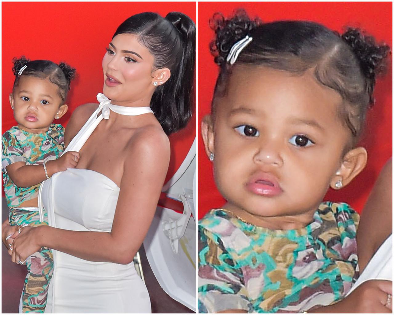 リアリティスターのカイリー・ジェンナーの娘ストーミちゃんは、2つにまとめたお団子ヘアの前髪にピンを2つ留めて。お団子とピンの合わせ使いがかわいい!