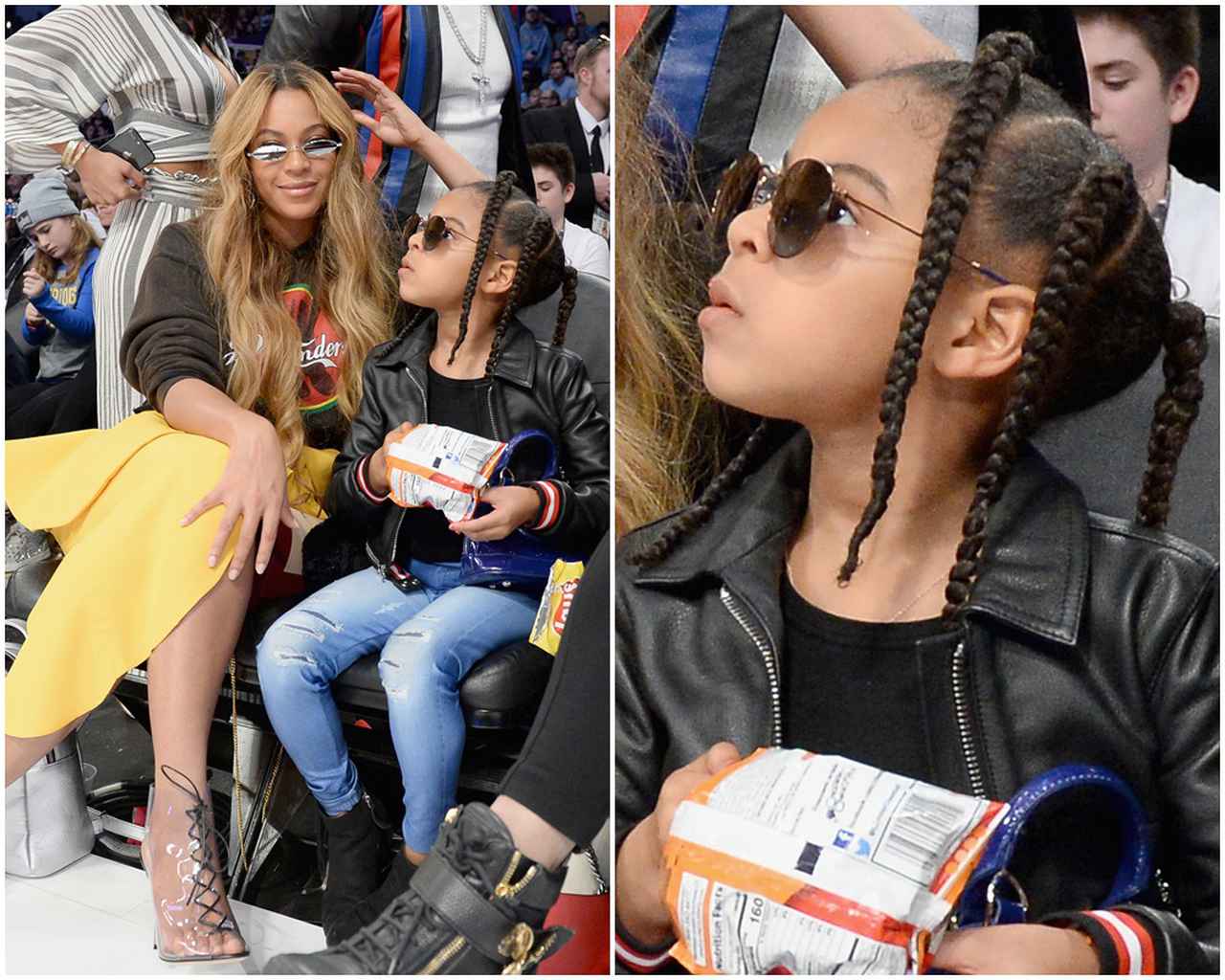 シンガーのビヨンセの娘ブルー・アイヴィーちゃんは、ブレイズヘアがロックなスタイルにマッチ。サイド2つ、後頭部1つ、顔上1つの4つのブロッキングが遊び心たっぷり。