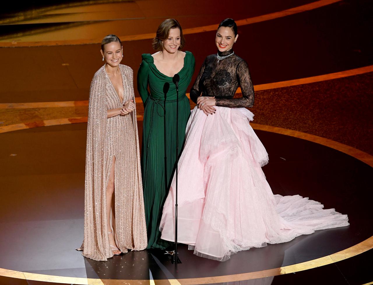 映画『ファイト・クラブ』の主演俳優であるブラッド・ピットをはじめとした観客が3人の皮肉の込められた提案に爆笑するなか、シガニーが、スーパーヒーローを演じるガルとブリーをギュッと抱き寄せ、「すべての女性がスーパーヒーローです」と宣言。そして最後に、「アカデミー賞の92年の歴史においてはじめて、女性コンダクターがこのパフォーマンスのオーケストラを指揮します」とシガニーが言うと、ガルが「やっとです!」とシャウト。会場中から拍手喝采が挙がった。