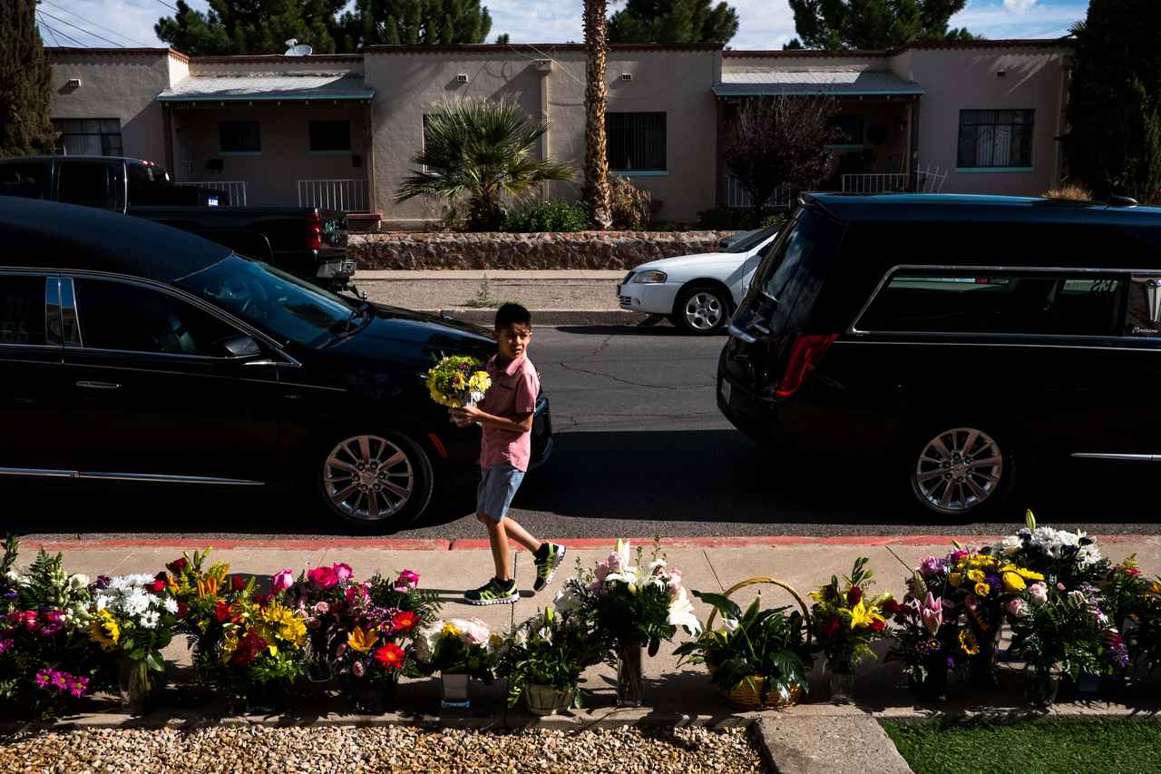 米テキサス州エルパソで発生し22名の命が犠牲になった銃乱射事件の追悼を行う少年