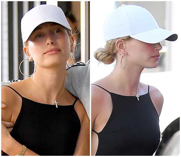 モデルのヘイリー・ビーバーは、シンプルな白のキャップに、しっかりとまとめたシニヨンを合わせて。スポーティーなだけでなく、横や後ろからのぞくお団子でこなれ感アップ。