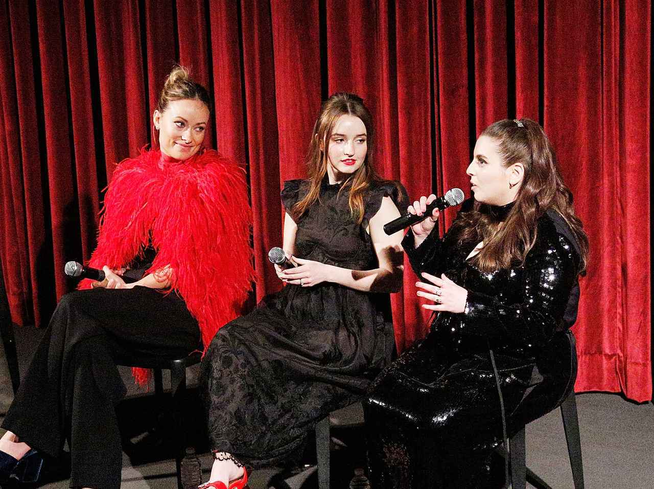 『Booksmart(ブックスマート)』監督のオリヴィア・ワイルド(左)、主演のケイトリン・ディーヴァー(中央)とビーニー・フェルドスタイン(右)。