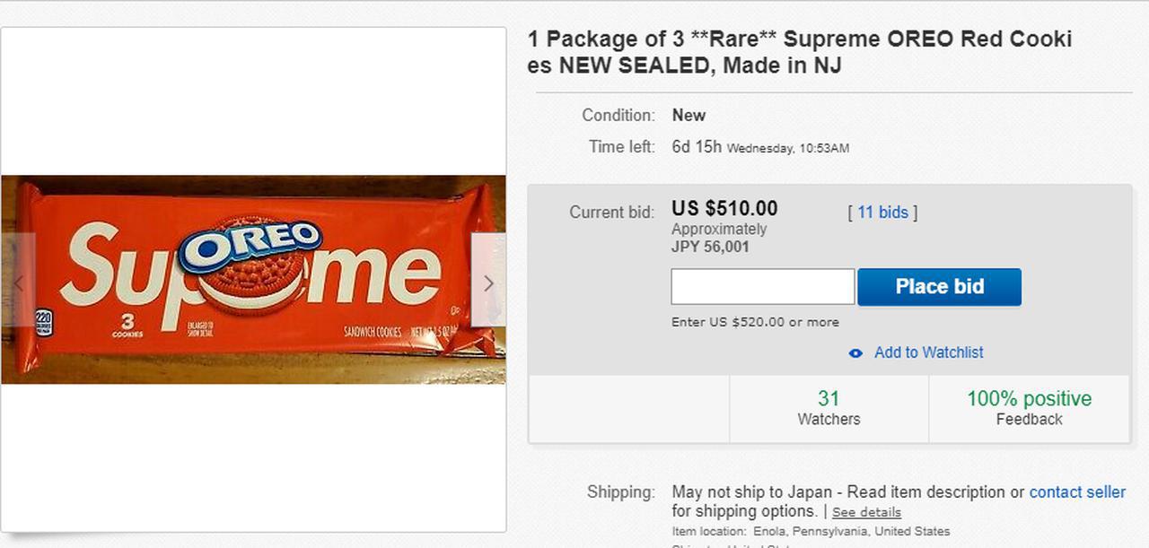 さらにはオレオは1パック8ドル(約880円)で販売されるという情報だけれど、すでに手に入れた何者かが米オークションサイトeBayでオークションにかけており、880円のコラボオレオが5万円にまで高騰している。