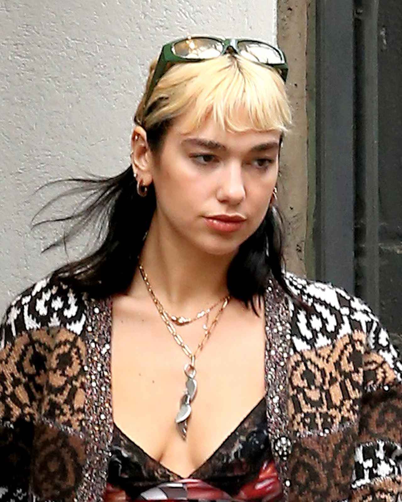 90年代風のセンター分け前髪やヘアピン、ダークカラーとブロンドの2色を使った大胆なツートーンヘアカラーなど、さまざまなヘアスタイルに挑戦することで知られるオシャレ感度高めの人気シンガーのデュア・リパ。
