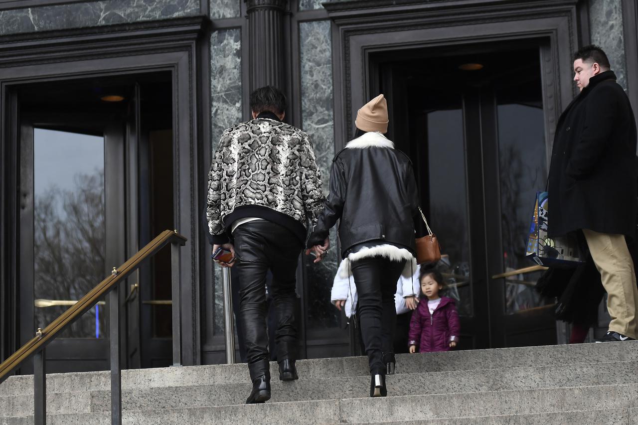 博物館の目の前に駐車された黒のバンから降りてきたニコラスとシバタ氏は、手をつないで階段を上り、博物館の中へ。この博物館はスケールの大きさが見どころで、観光客が多く集まるスポットだが、そんなことはまったく気に気にならない様子でデートを楽しんだよう。