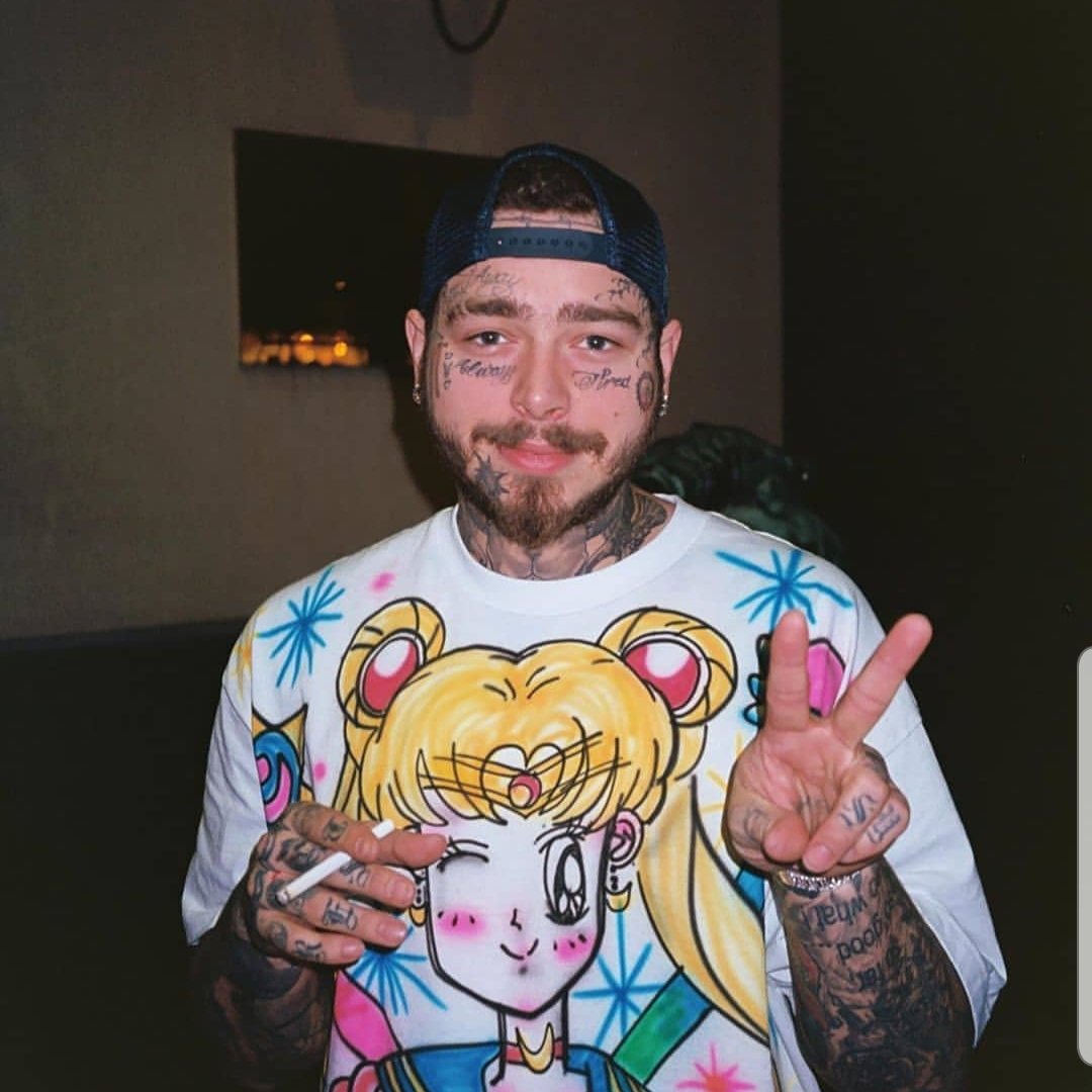 ラッパーのポスト・マローンはまさかのセーラームーンファン!? プライベートでセーラームーンが描かれたTシャツを愛用。(フロントロウ編集部)