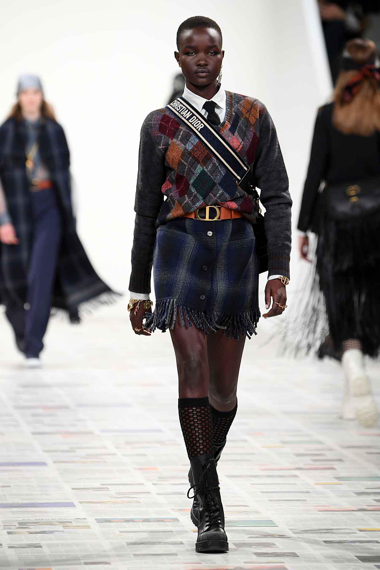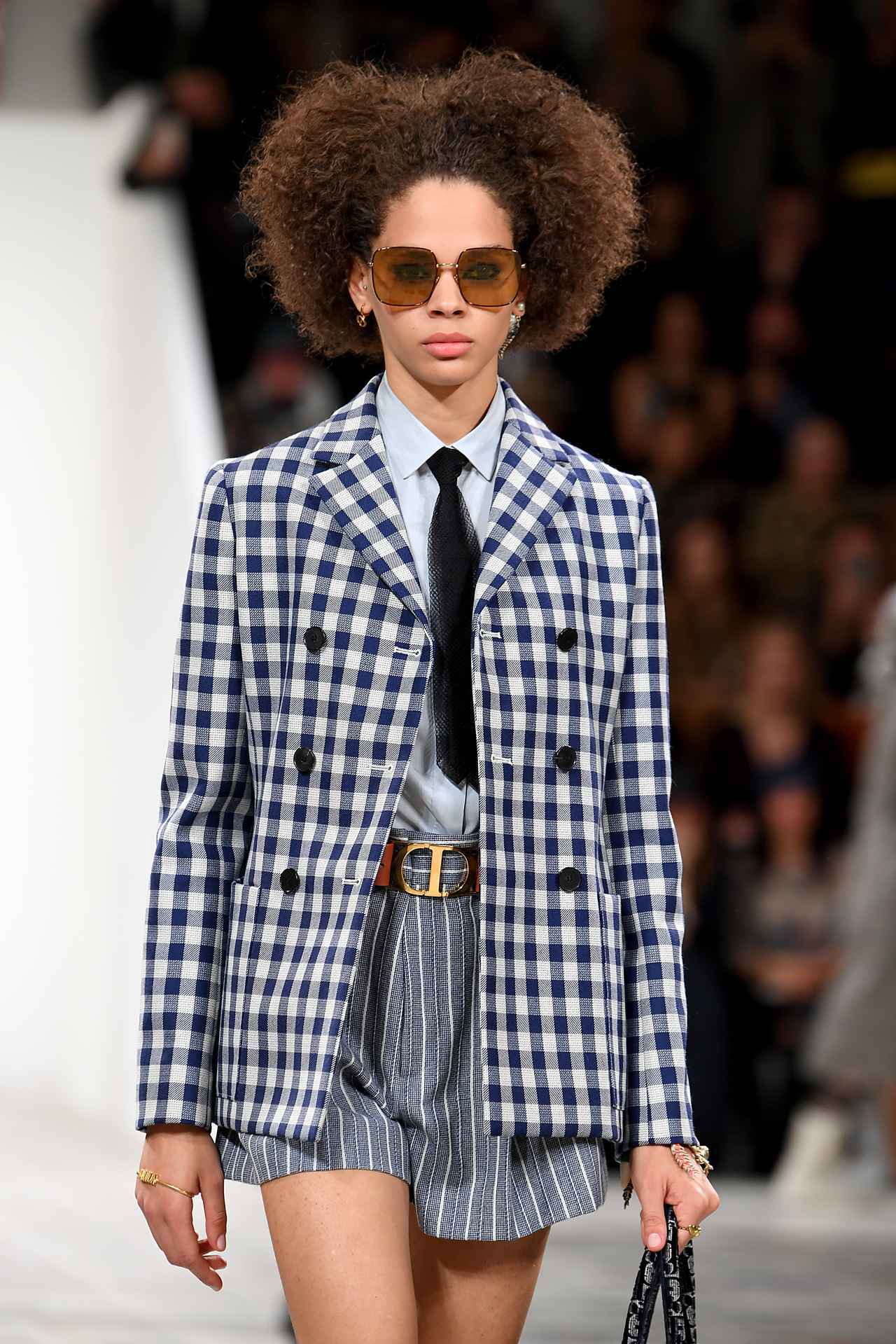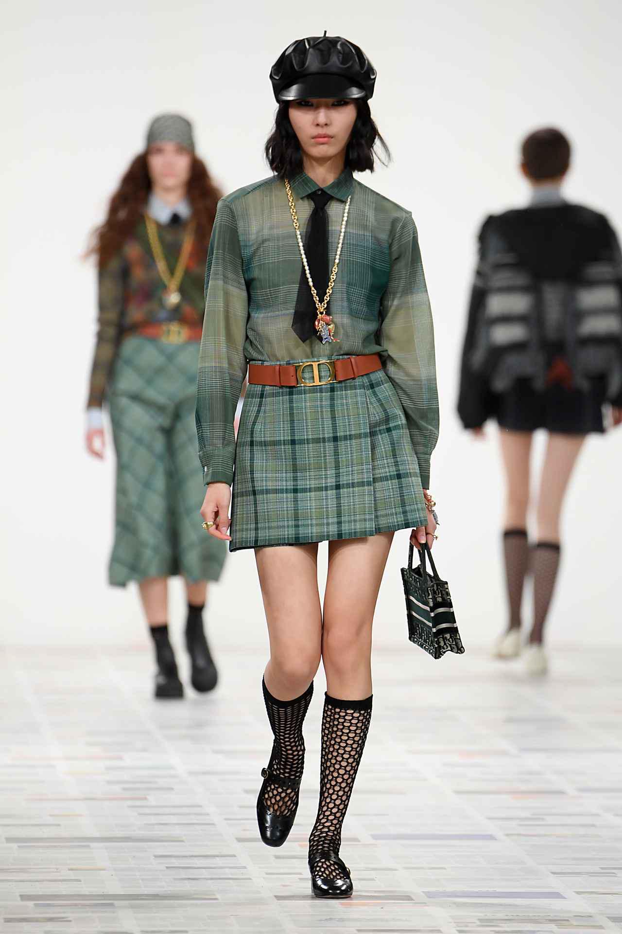 マリアは、1960年~1970年代のイタリアのフェミニストアートにおける象徴的な人物に着想を得てデザイン。かつてクリスチャン・ディオールが愛したというチェック柄は、スカート、ジャケット、パンツなど様々なところで用いられ、パターンもそれぞれ違い、同じチェックはチェックでも全く違った印象に。