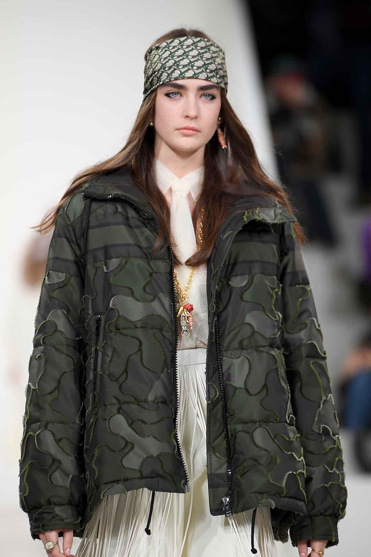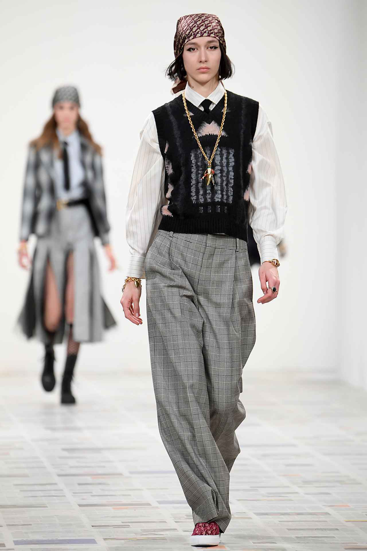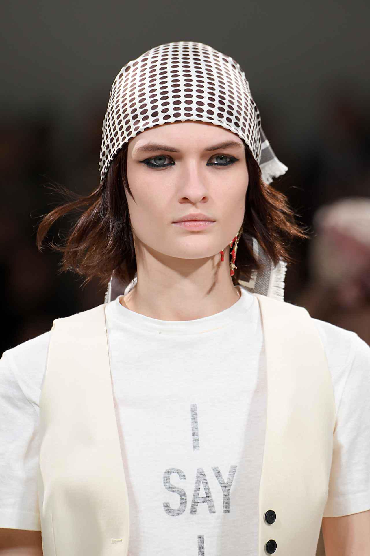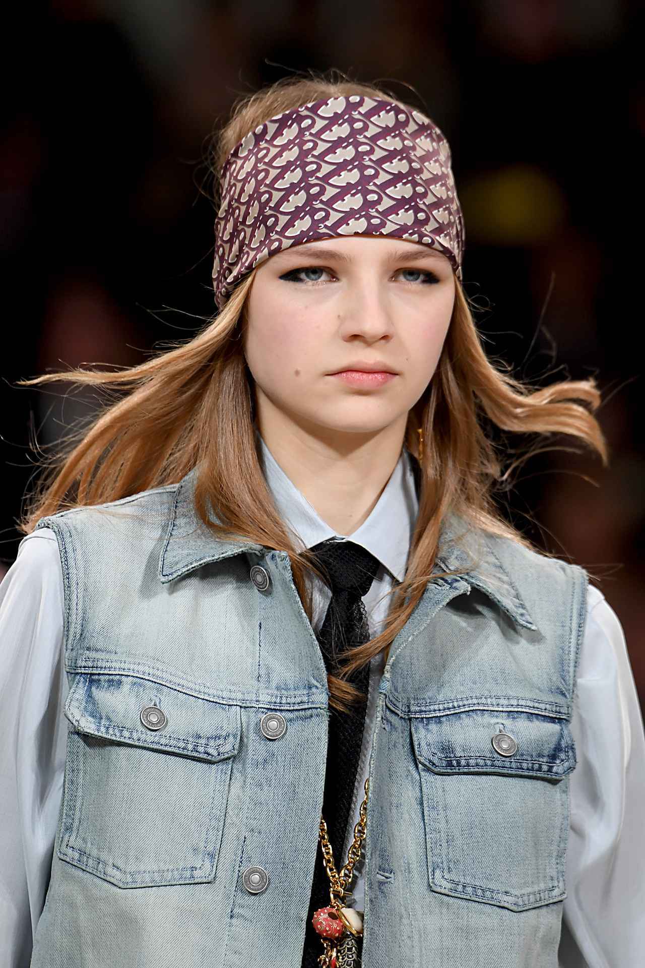 90年代を象徴とするようなバンダナがランウェイに。Diorという文字がデザインされたものをはじめ、水玉模様のものなどキャッチーな雰囲気なバンダナが続々と登場し、コレクションではほとんどのモデルがスタイリングの一部として取り入れた。