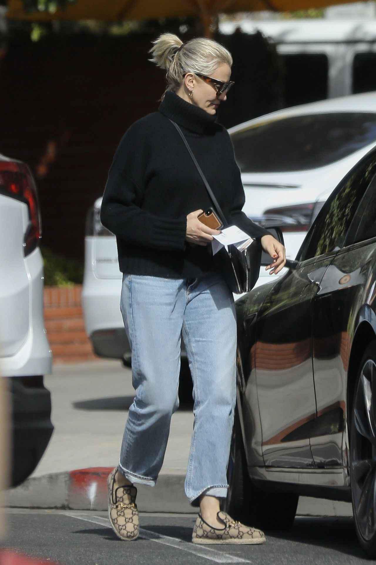 現在は女優業を休業中のキャメロン・ディアスは、シンプルなニット+ストレートデニムにグッチの「GGウールシューズ」を合わせて、足元にポップなアクセントを置いて。