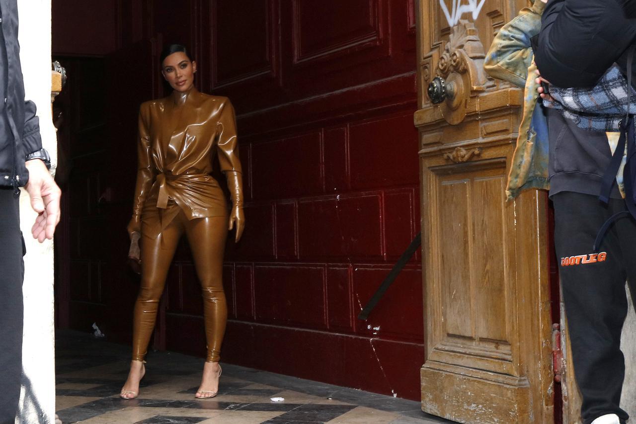パリ・ファッションウィークのためフランスを訪れていたキムは、バレンシアガ(Balenciaga)のコレクションを訪れた際も、カニエがパリで日曜礼拝を行なったときも、バルマン(Balmain)のラテックスの服を着用していた。カニエが手がけるYeezy Season 8のコレクションに参加した際は、Yeezyのアイテムに身を包んでいたけれど、パリに滞在しているそれ以外の時間は、ほとんどがバルマンのラテックスの服だった。