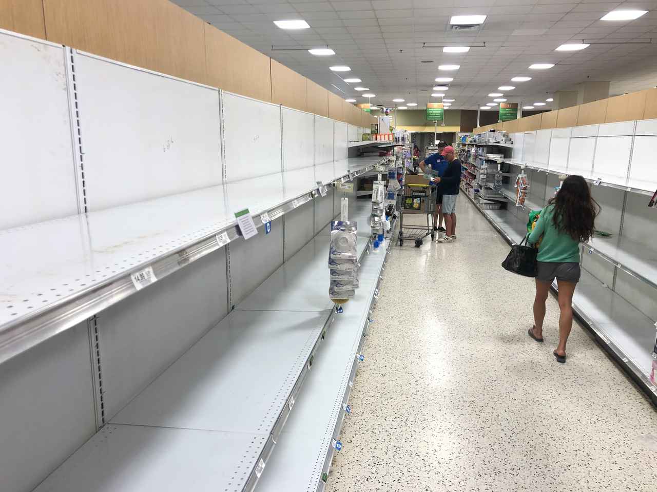 フロリダ州マイアミにあるスーパー。消費者の買い占めによってトイレットペーパーの棚が空になっている。