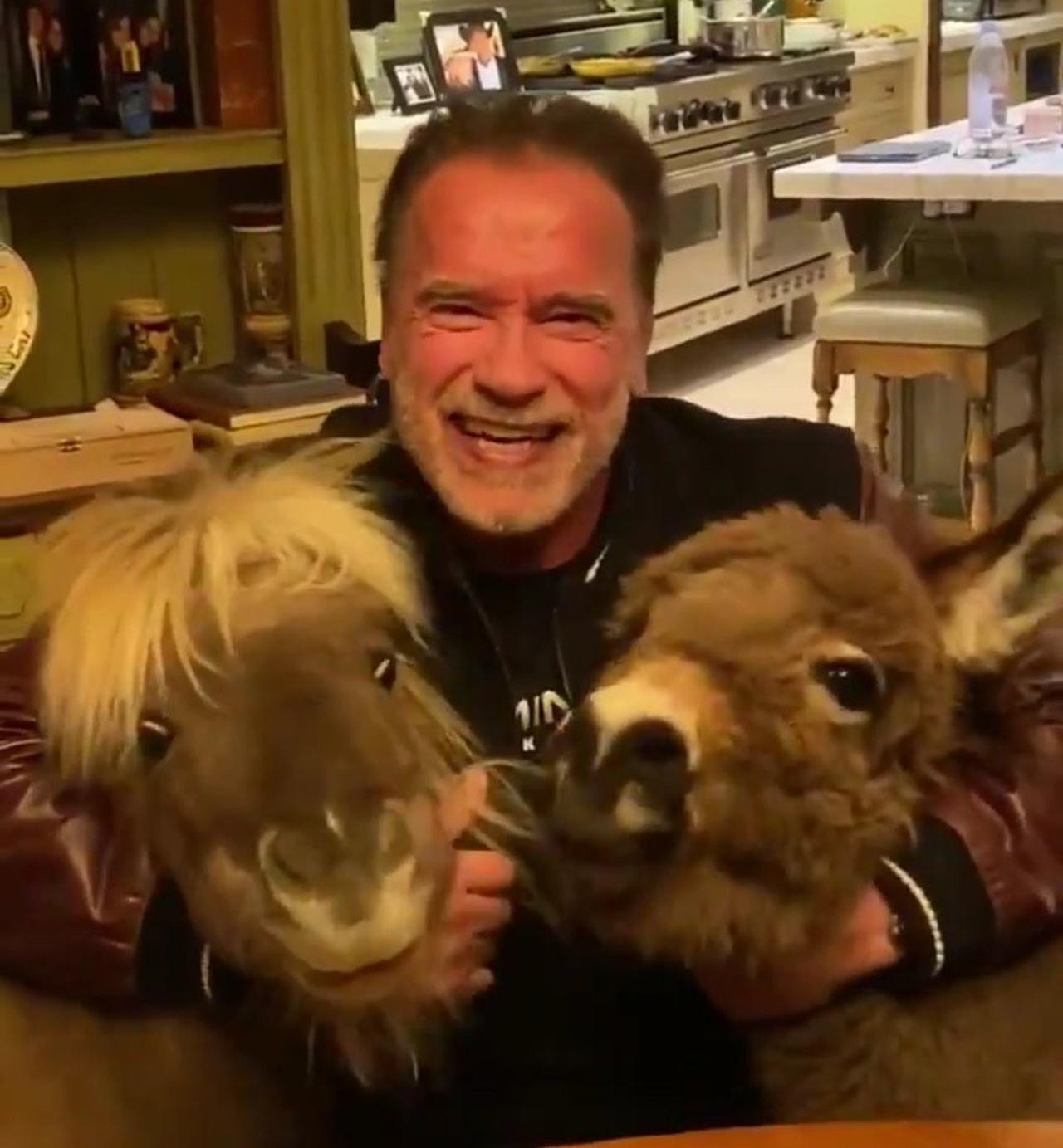 アメリカ国内での新型コロナウイルスの感染拡大をうけて、自主隔離中の俳優アーノルド・シュワルツェネッガーが、ペットのミニポニーやミニロバと一緒に不要不急の外出を控えるよう訴える動画をSNSで公開。(フロントロウ編集部)