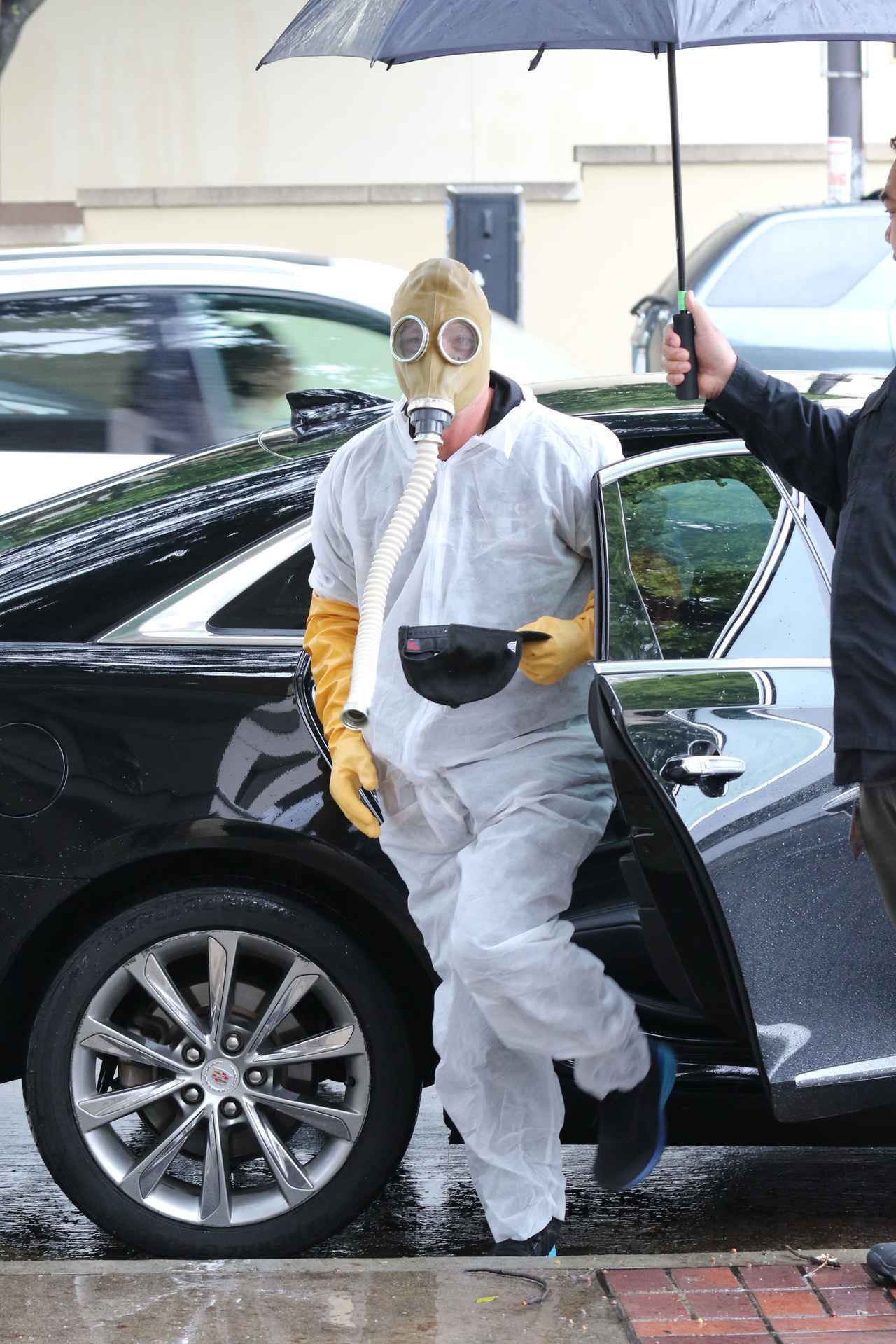 アメリカの人気オーディション番組『アメリカズ・ゴット・タレント』で審査員を務めるホーウィー・マンデルが、撮影のために会場入り。しかし車から出てきたホーウィーが、誰だか分からない! なぜなら…、新型コロナウイルスの感染対策で全身防護服を着てきたうえ、頭部をすっぽり覆い隠すガスマスクを着用してきたから。