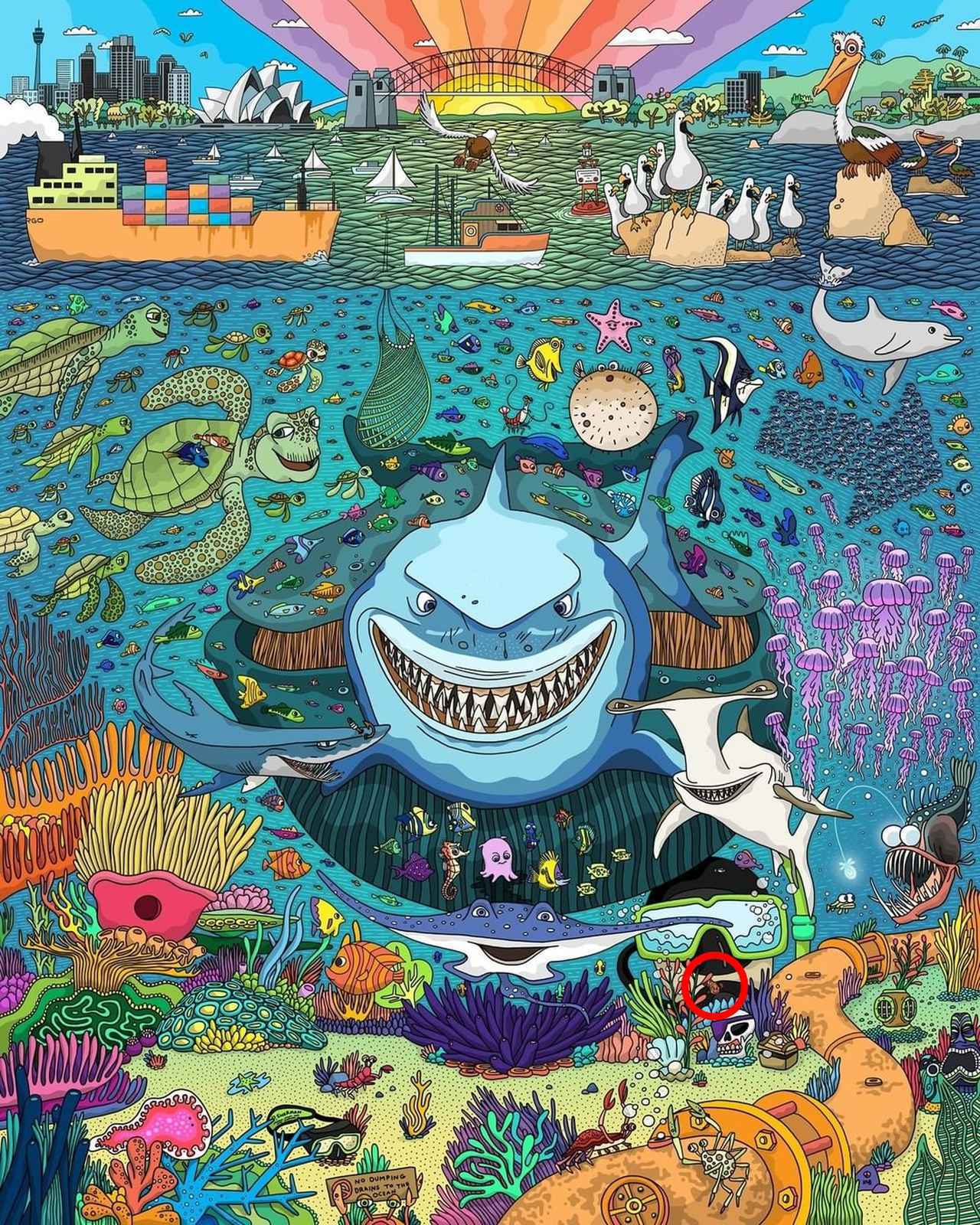 カラフルな模様と様々な海の生き物が大集結した、かなり難易度の高い絵探し画像に、多くの人が苦戦しながらもニモを発見。あなたは見つけられた?