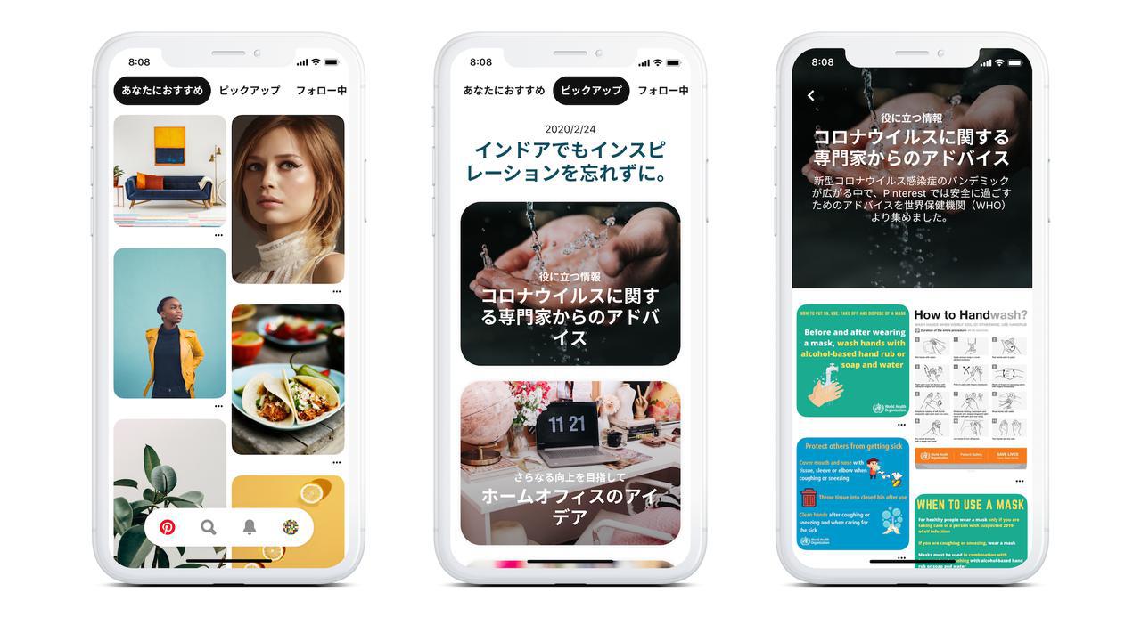 より適切で役に立つスペースにするために、新型コロナウイルスの感染拡大を防ぐための世界保健機関(WHO)や疾病管理センターの情報に基づいたコンテンツや、子供と一緒に作れるレシピ、セルフケアのアドバイス、家族で楽しめる映画のインスピレーションなど、人気のピンからピックアップした豊富なコンテンツを取り扱う。