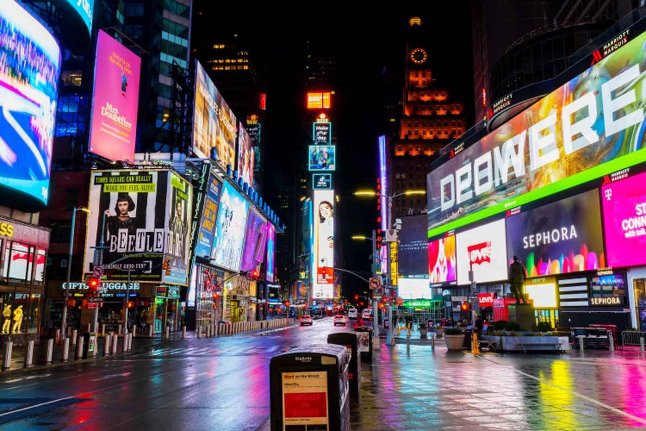 外出自粛要請により無人となったニューヨークのタイムズスクエア。