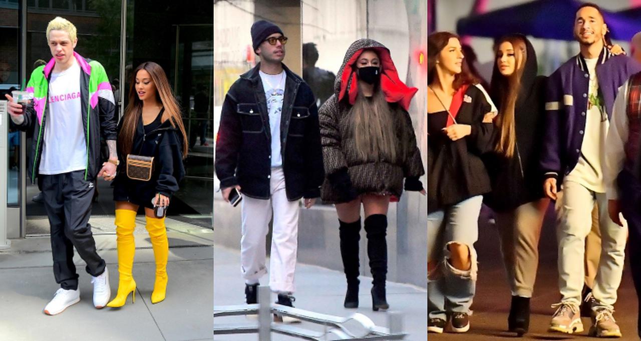 左から:ピートと交際中のアリアナ、リッキーとニューヨークの街を散歩するアリアナ、2月に友人たちとマイキーと一緒にディズニーランドに出かけたアリアナ。