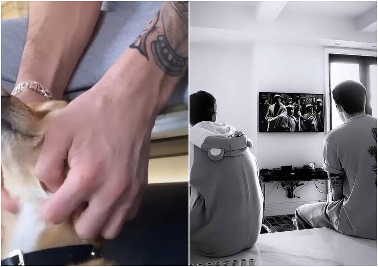 アリアナがインスタグラムで公開したダルトンの体の一部が写った映像&写真。顔は写っていないものの、腕に入ったタトゥーが目印となり、男性の正体がダルトンであることが判明した。©Ariana Grande/ Instagram