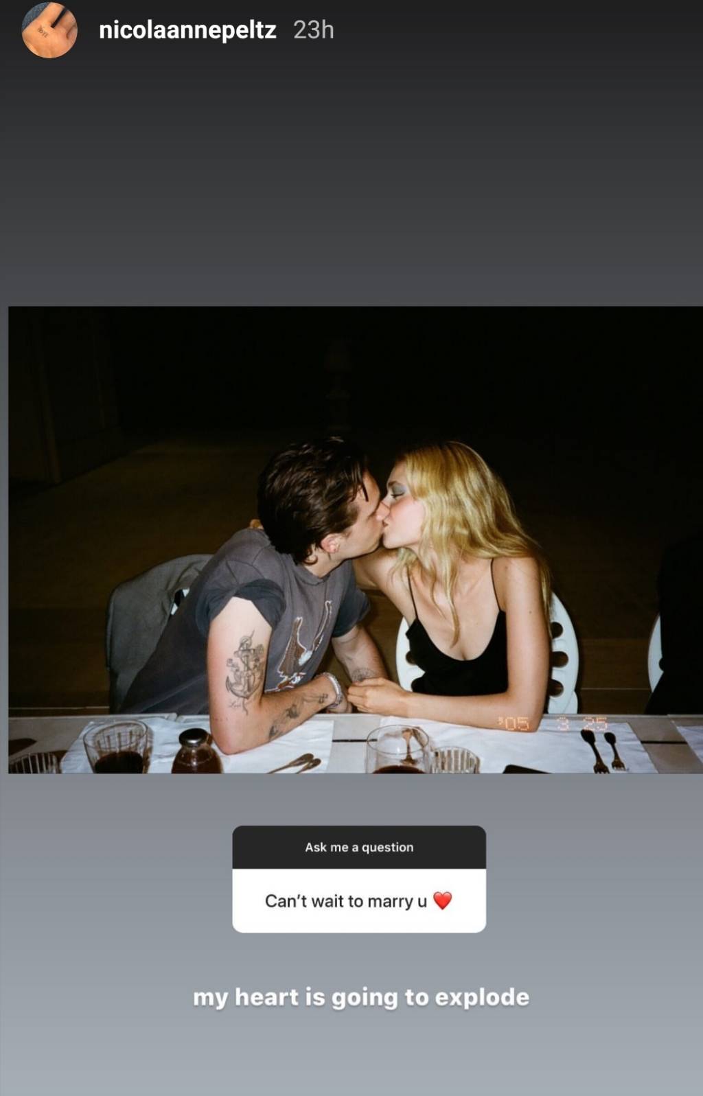 それぞれ質問に答えるなか、ニコラのもとには「君と結婚するのが待ちきれない」というメッセージが。メッセージの送り主は表示されないけれど、ニコラがあえてこのメッセージを選んだことと、さらにそこにブルックリンとのキス写真をつけて公開したことから、ファンの間では「ブルックリンが送ったのでは!?」という説が過熱。ニコラはさらに「ハートが爆発しちゃう」とラブラブな返しを送り、ファンをヤキモキさせた。