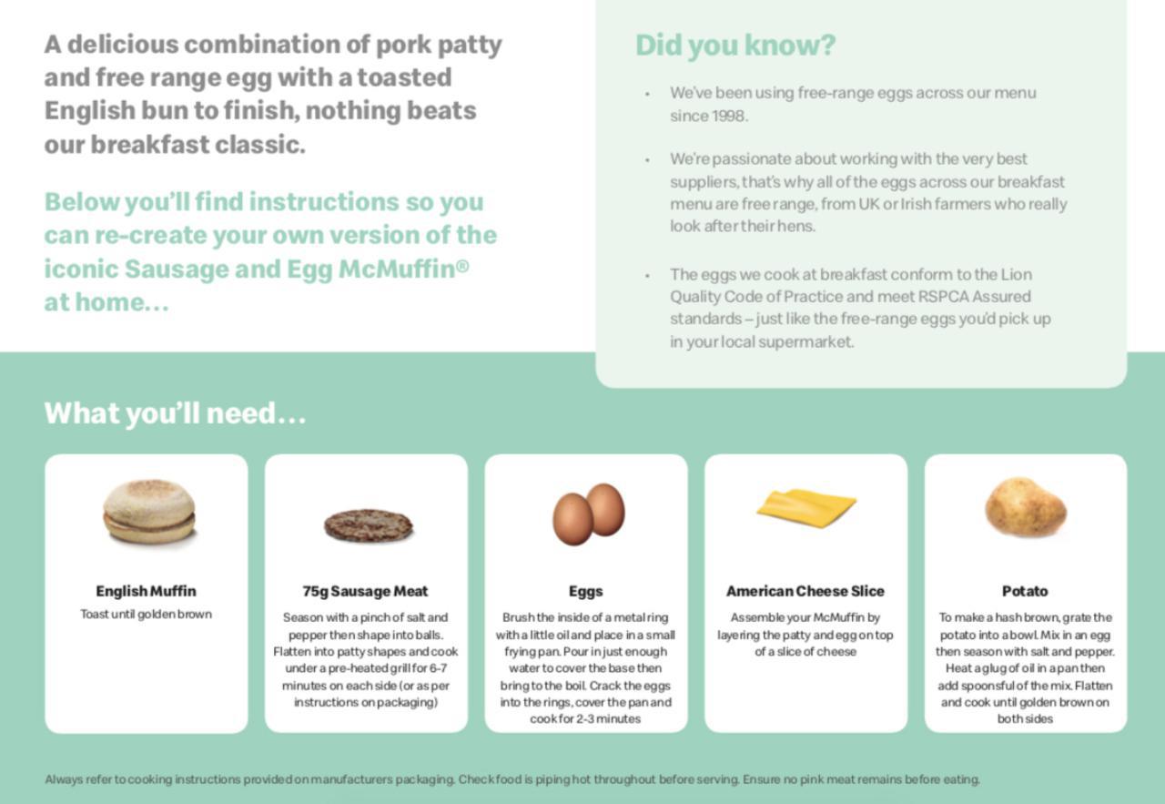 イギリスとアイルランドで全店舗閉鎖中のマクドナルドが、ファンのためにソーセージエッグマフィンとハッシュドポテトを自宅で作るためのレシピを公開した。(フロントロウ編集部)