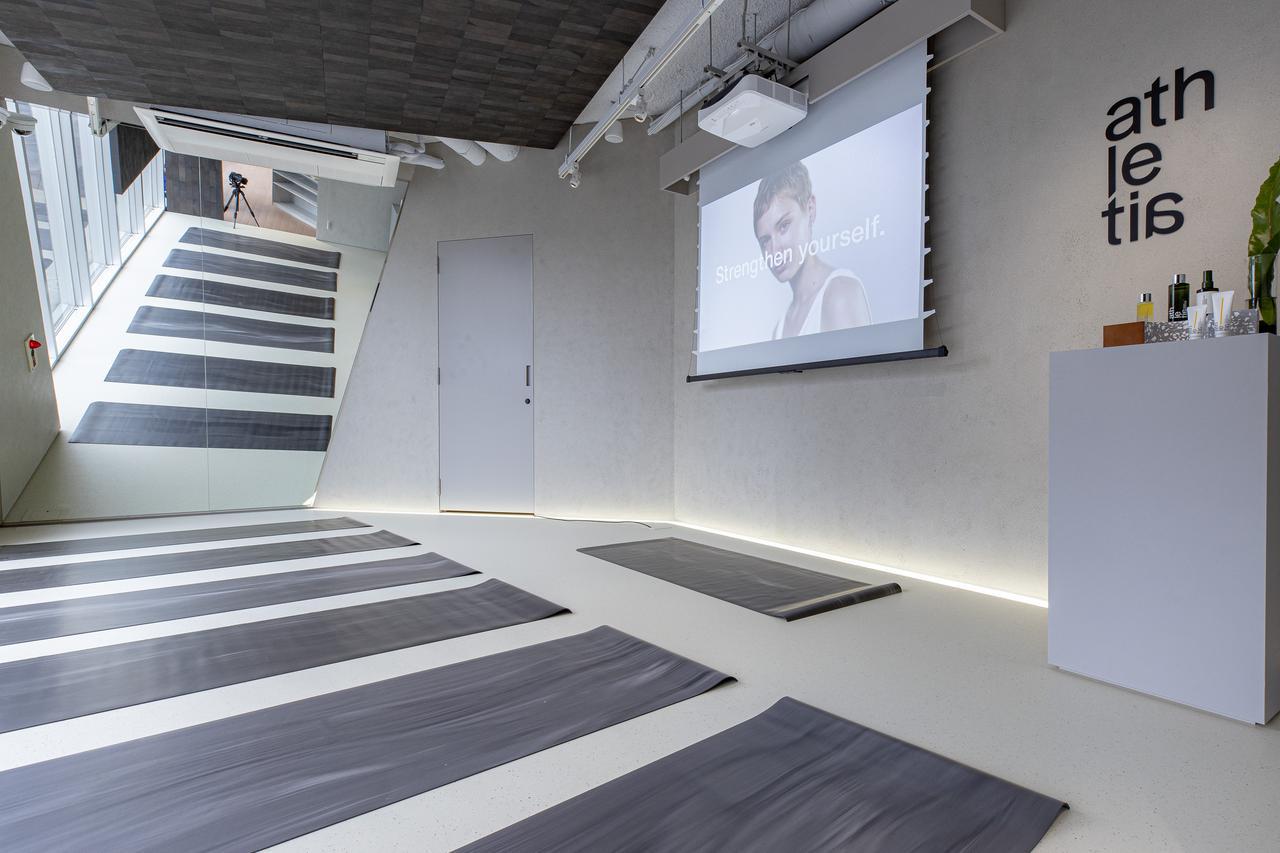 スタジオとショップ、2つの機能を持ち、肌やからだ、ライフスタイルの新しい提案や情報を共有できるのが魅力。1階はショップ、2階は様々なアクティビティを体験できるスタジオ併設の店舗で、アスレティアの世界観を実際に感じることができる、体験型ライフスタイルスポットとなっている。