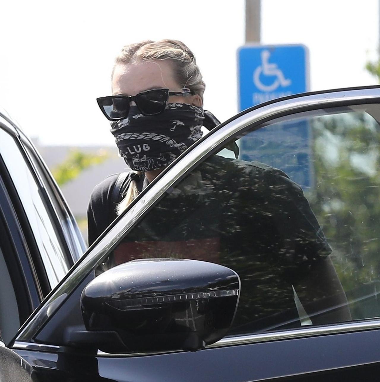 映画『スーサイド・スクワッド』などで人気の女優マーゴット・ロビーが、コロナ対策として、バンダナを使ってヒネリを効かせたスタイリングを披露!(フロントロウ編集部)