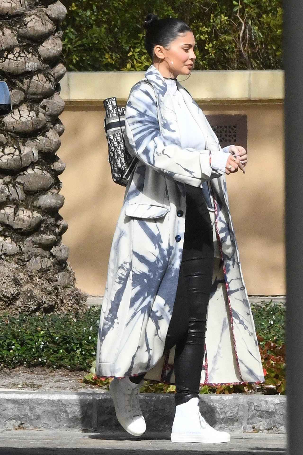 若い世代に絶大な人気を誇るトップセレブのカイリー・ジェンナーは、タイダイのスプリングコートを愛用。ロゴプリントが目立つディオールのバッグパックでセレブらしいアクセントを。