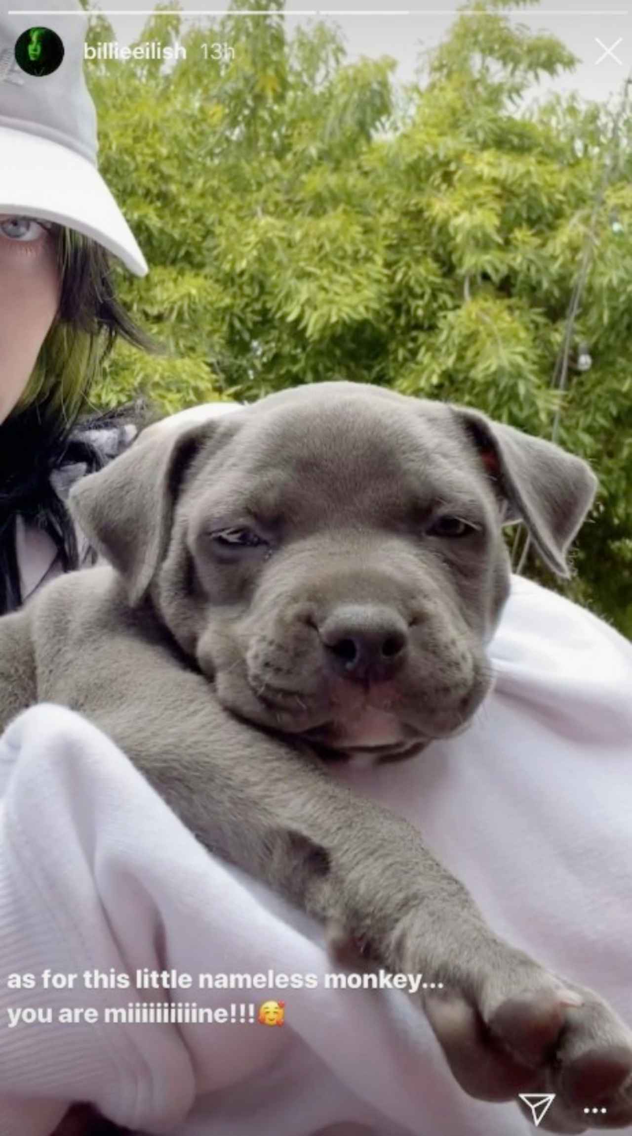 続いて、グレーのピットブルを抱く写真を公開し、「この名無しのモンキー…きみは私のものだよ」とハートの絵文字をたっぷり添えて、この子犬を正式に家族に迎え入れたことを報告した。