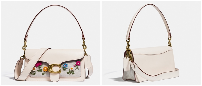 Tabbyの新作は、白いスムースレザーにアンティーク調のブラスの金具、アイコニックなシグネチャーパターンに丁寧に刺繍がほどこされたフラワーモチーフが華やぐ、春らしいデザイン。