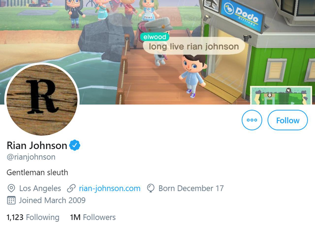 その事実に気がついた、自身も『スター・ウォーズ』ファンのイライジャが黙っているはずがない。ジェシカの島に到着したイライジャが第一声で発した言葉は…、「ライアン・ジョンソン万歳」! そしてジェシカがそのスクショを公開したところ、なんとジョンソン監督本人が、ツイッターのヘッダーをその画像にするというミラクルが発生!!